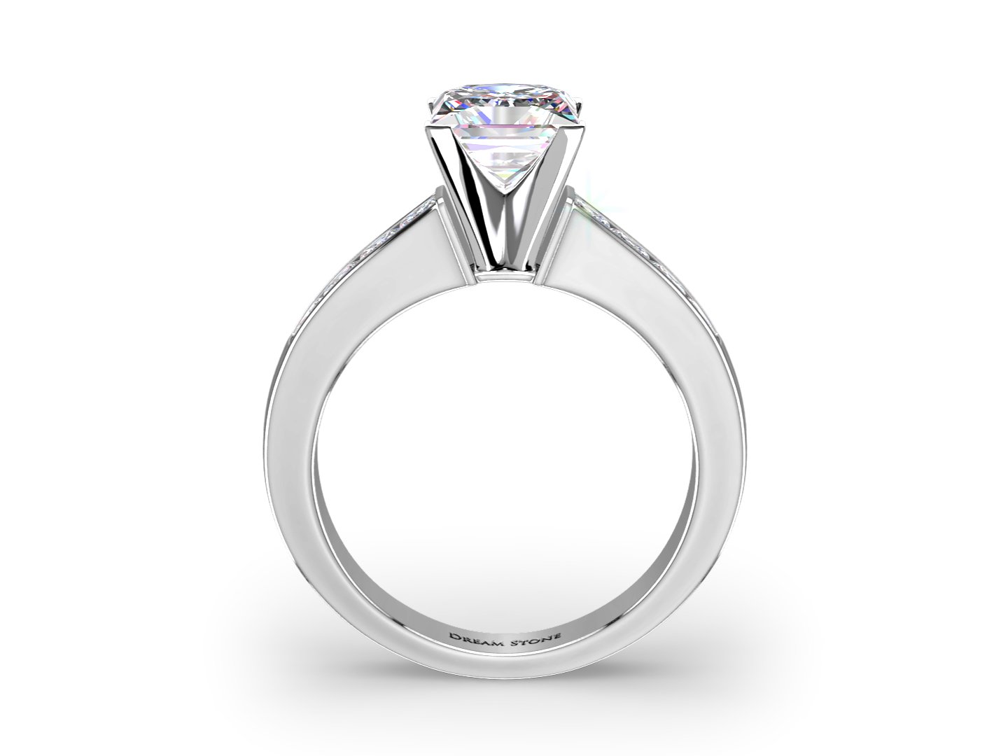 Channel-set princess-cut diamonds, offer the ideal brilliance and fire to accent your choice of center stone. 1/2 carat total diamond weight.