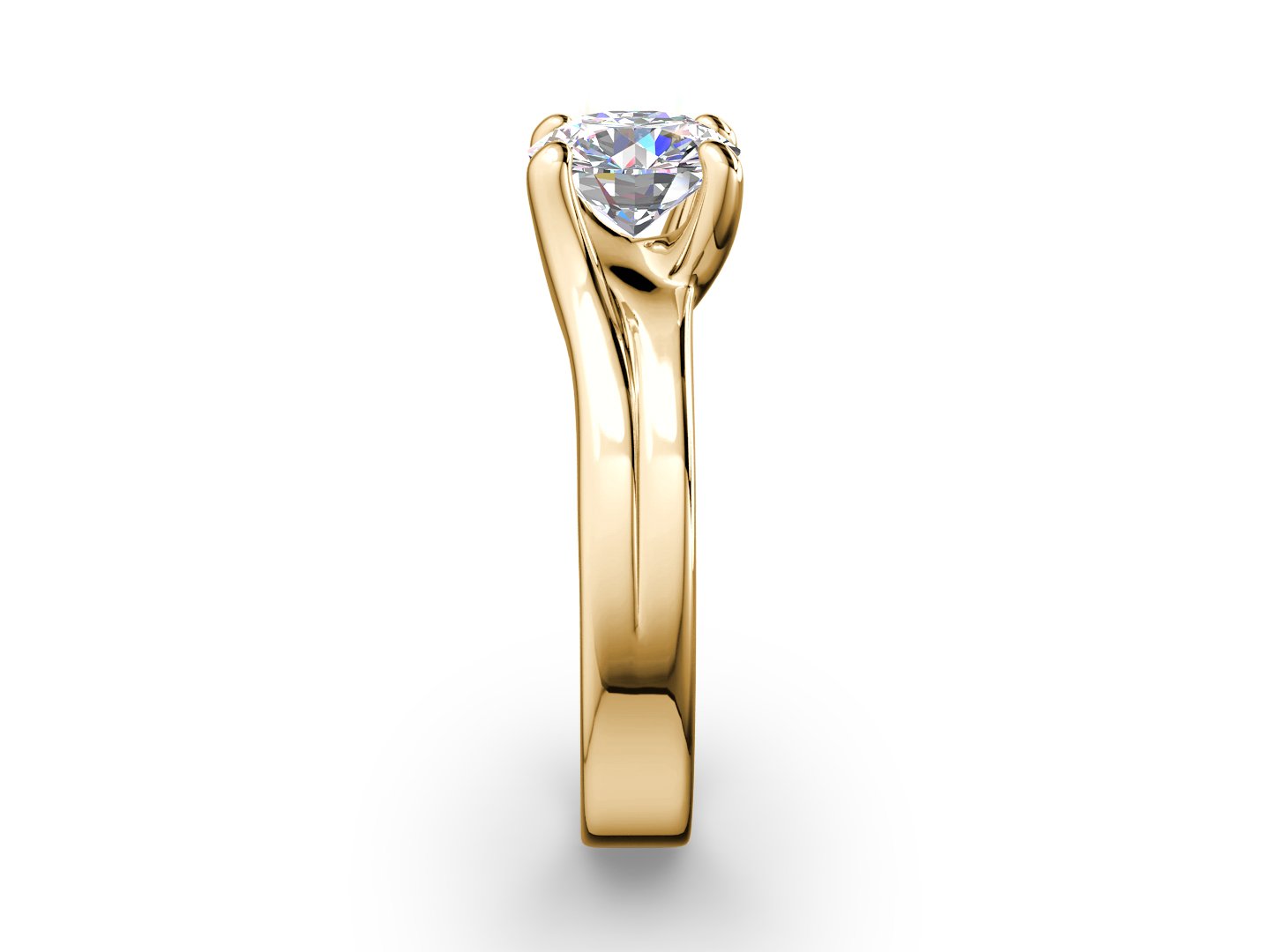 This truly remarkable setting sweeps upwards turning into four-prongs to secure your choice of round diamond.