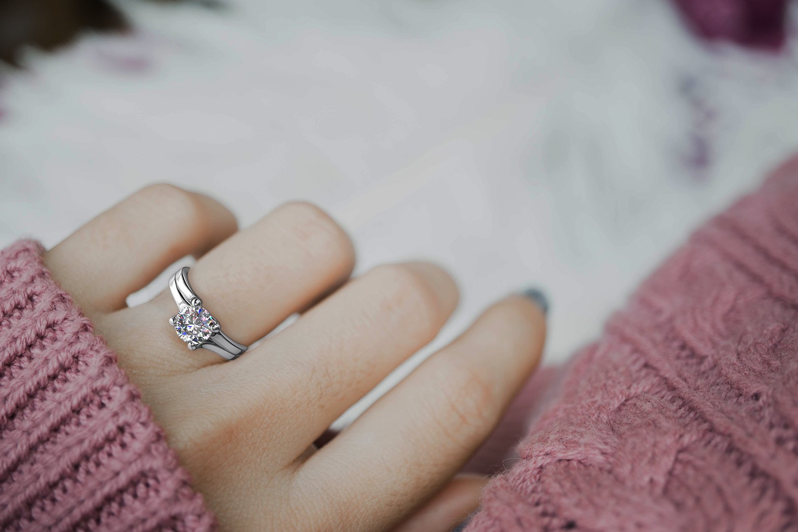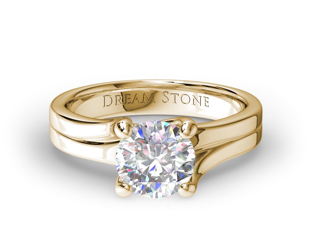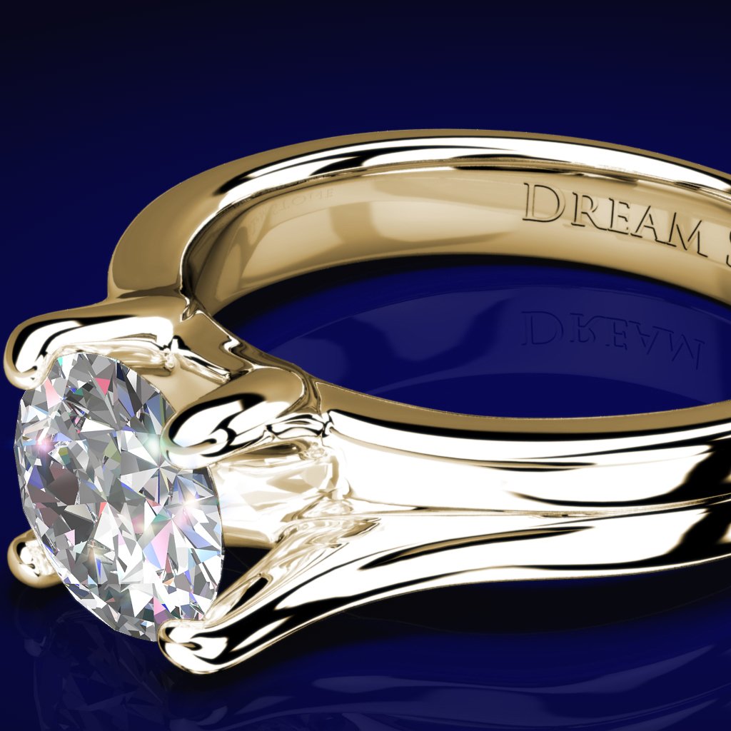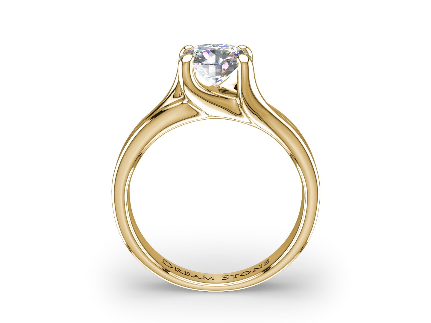 This truly remarkable setting sweeps upwards turning into four-prongs to secure your choice of round diamond.