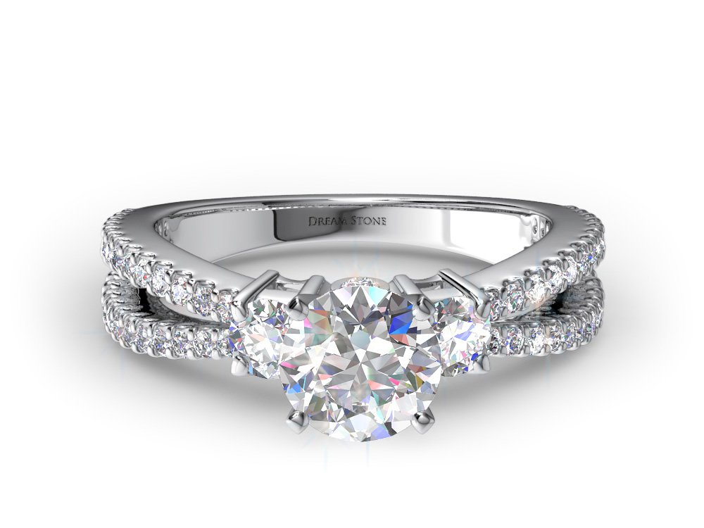 DUAL-SHANK PLATINUM DIAMOND ENGAGEMENT RING in 18K White Gold