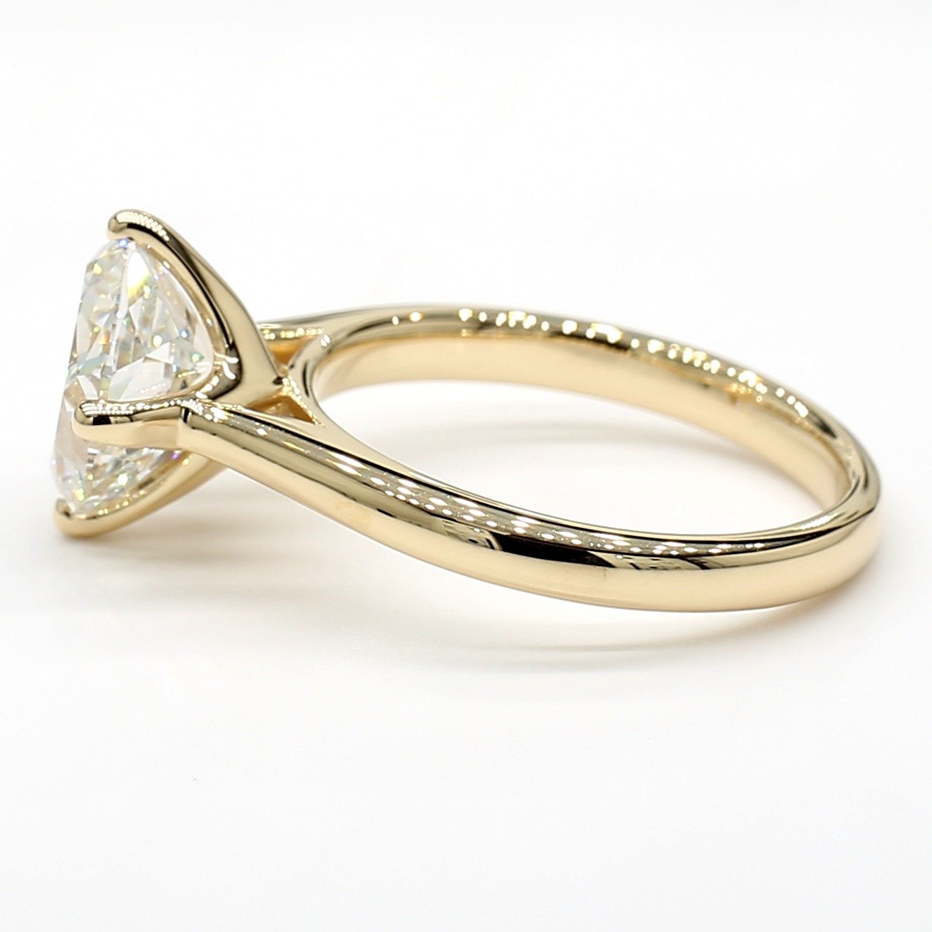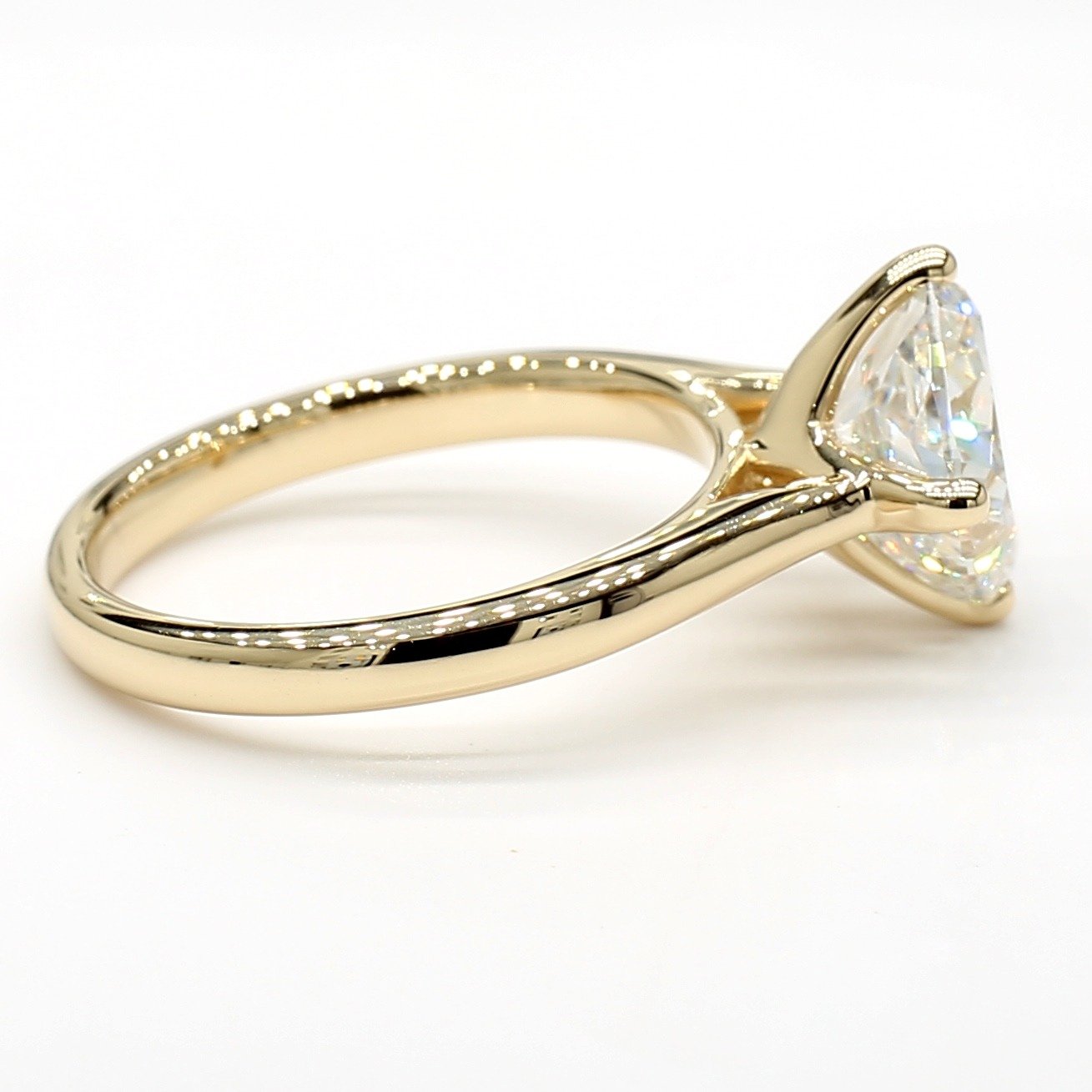 The Emma Engagement Ring is a timeless and elegant piece featuring a stunning cushion-cut diamond, secured by four delicate prongs. Set on a sleek and polished yellow gold band, this solitaire ring highlights the diamond's brilliance and fire. The minimalist design enhances the center stone's beauty, making it a perfect choice for those who appreciate classic sophistication with a modern touch.