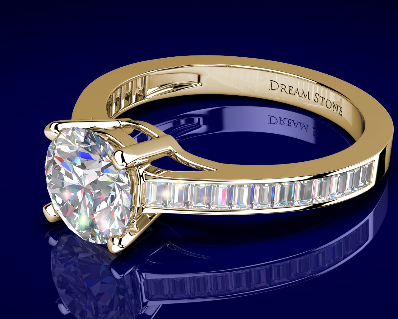 EVELYN DIAMOND ENGAGEMENT RING WITH CHANNEL-SET BAGUETTES in 14K Yellow Gold