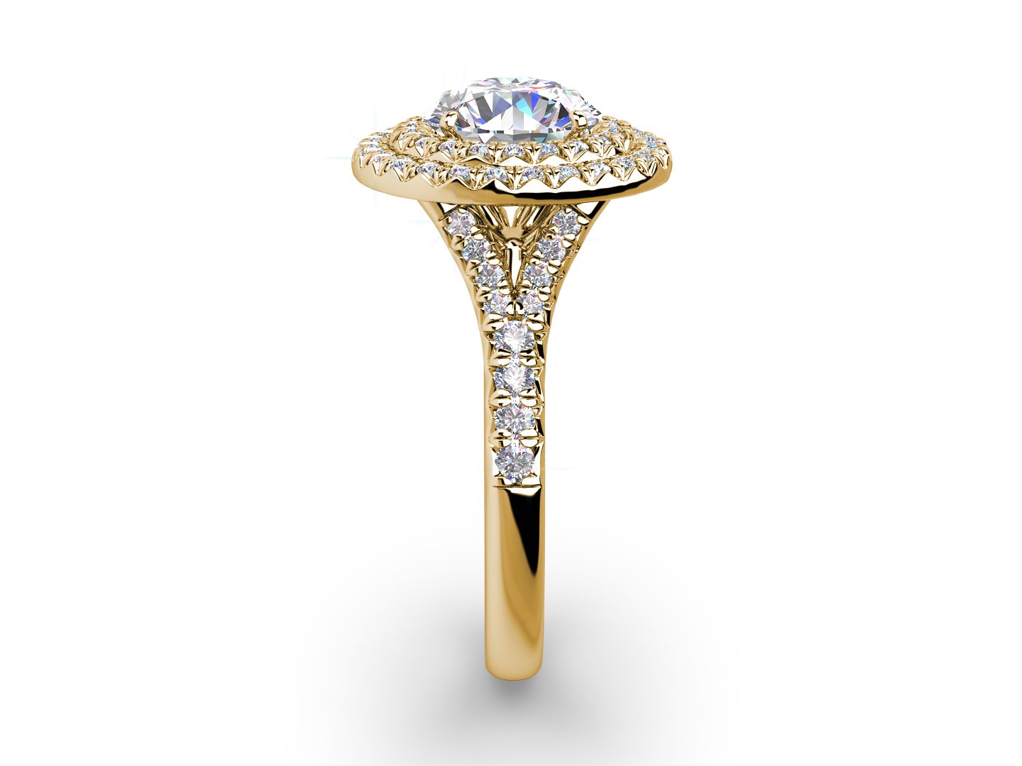 FEBE DOUBLE HALO DIAMOND ENGAGEMENT RING in 18K Yellow Gold