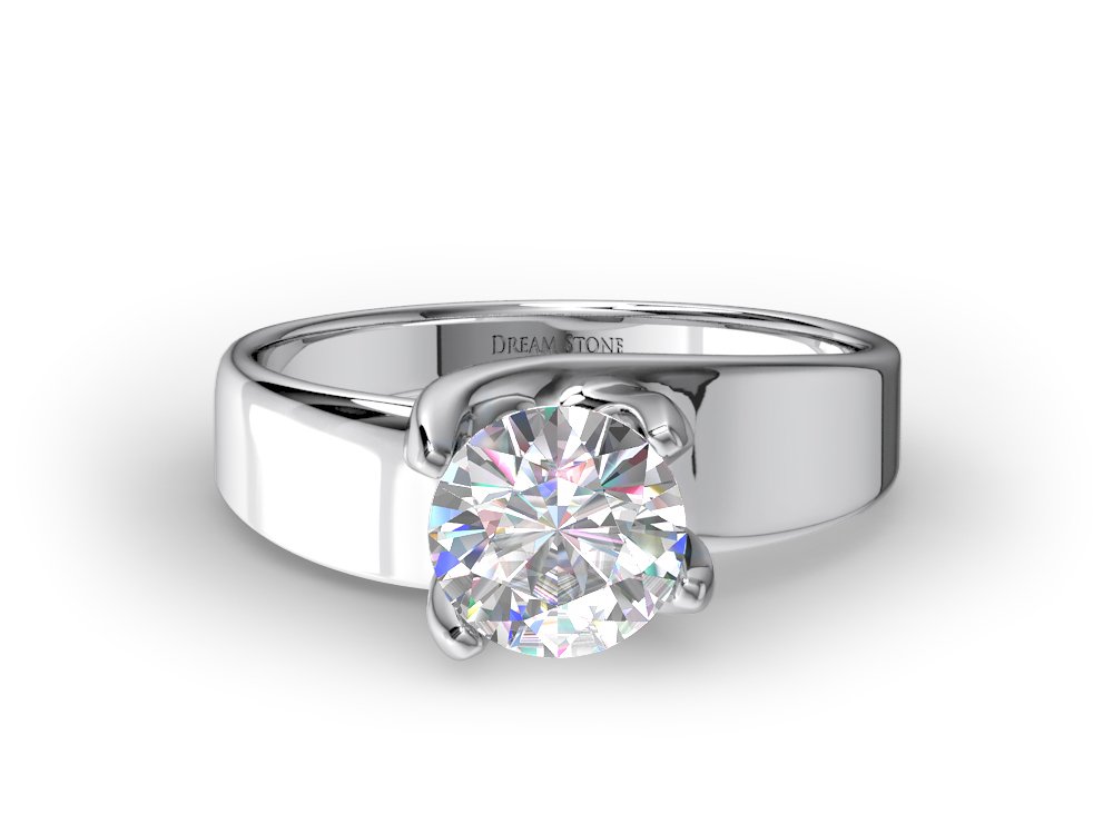 This unique setting features a shank that sweeps upwards into four interlocking prongs to secure your choice of diamond.