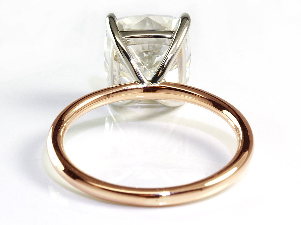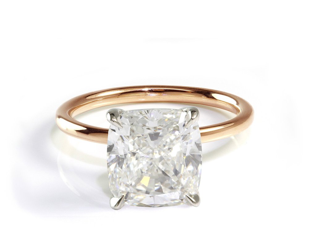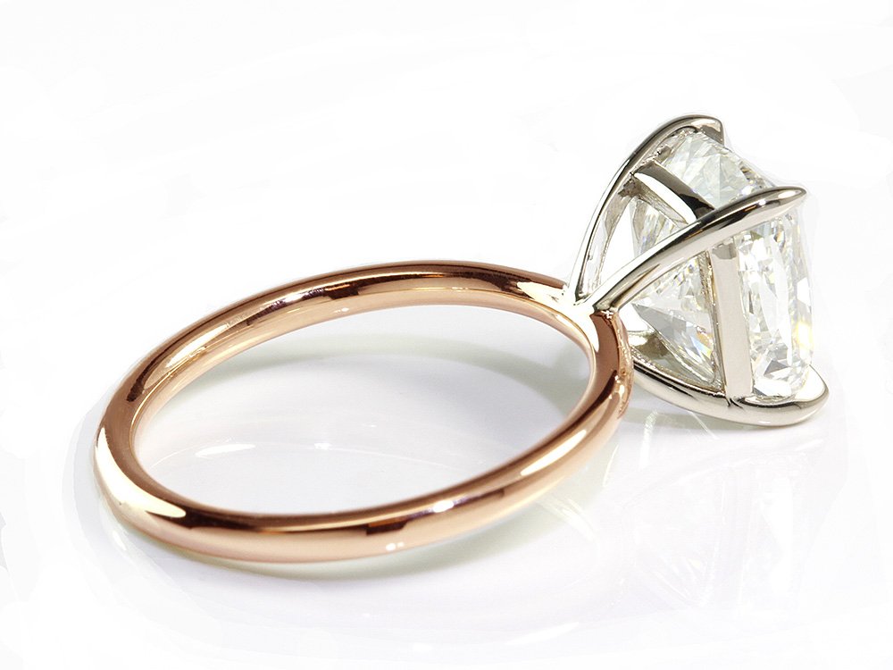 The Le Petit solitaire engagement ring is an exquisite setting to accommodate any center diamond shape of your choice. This setting allows for a wedding band to fit flush against the ring. The band width comes in a thin 1.8 mm. A delicate feature that helps put all the attention on the main diamond. We can customize the thickness of this band from 1.5 to 2.5 mm at no extra charge. Just email us your preference after you place your order.
