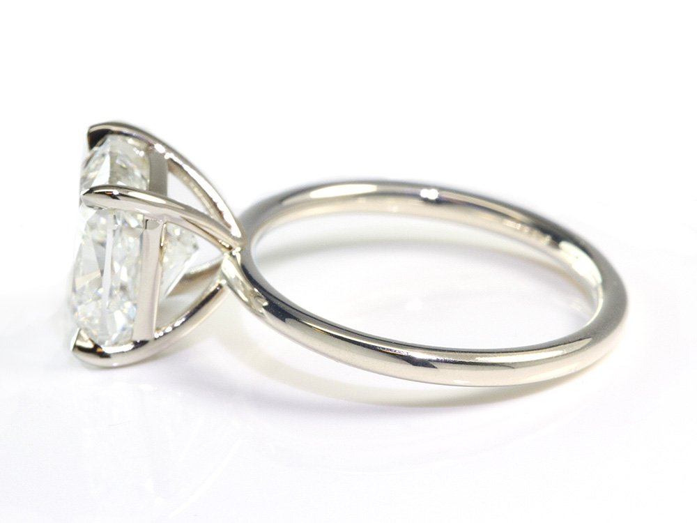 The Le Petit solitaire engagement ring is an exquisite setting to accommodate any center diamond shape of your choice. This setting allows for a wedding band to fit flush against the ring. The band width comes in a thin 1.8 mm. A delicate feature that helps put all the attention on the main diamond. We can customize the thickness of this band from 1.5 to 2.5 mm at no extra charge. Just email us your preference after you place your order.