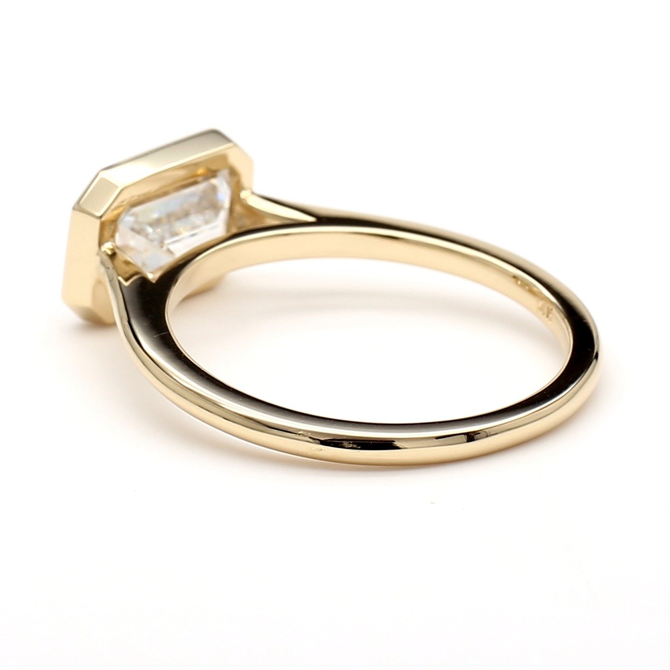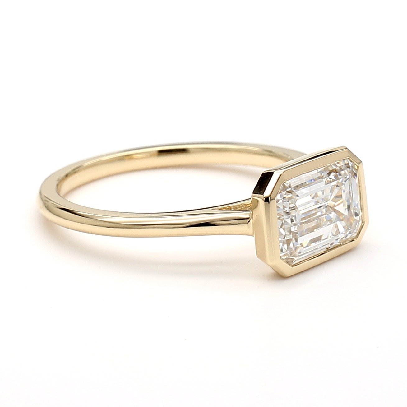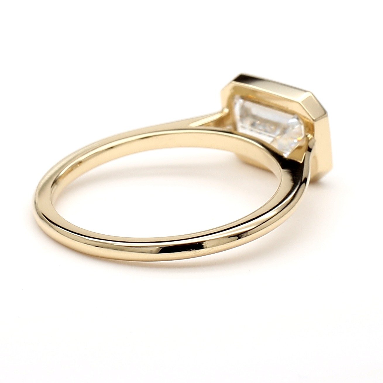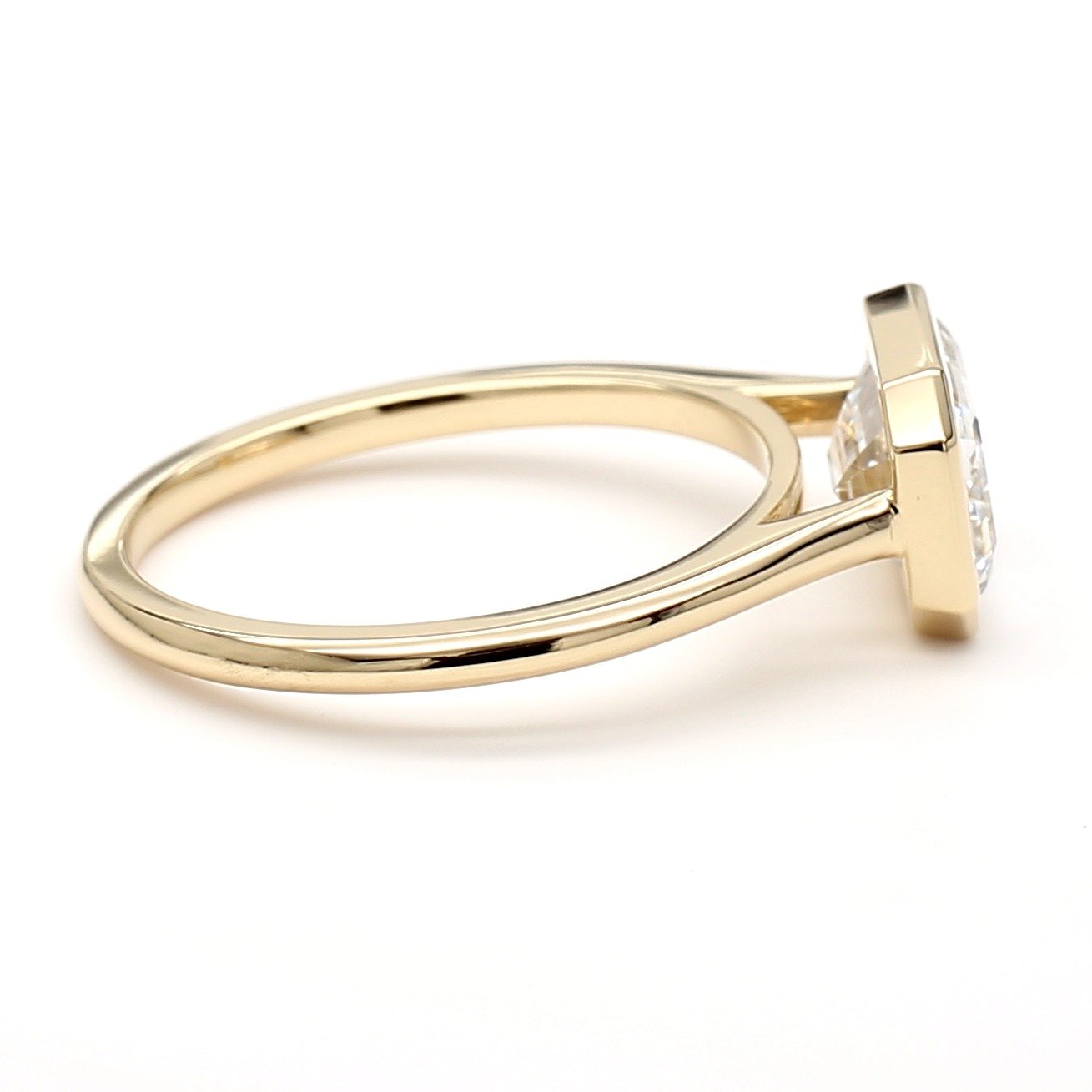 The Liliana Diamond Engagement Ring is a modern masterpiece that exudes elegance and refinement. Featuring a mesmerizing emerald-cut diamond set within a sleek bezel setting, this ring offers a contemporary yet timeless appeal. The minimalist design highlights the diamond’s exceptional clarity and step-cut facets, allowing it to radiate sophistication. Crafted in warm yellow gold, the Liliana ring is perfect for those who appreciate understated luxury with a bold, architectural charm.