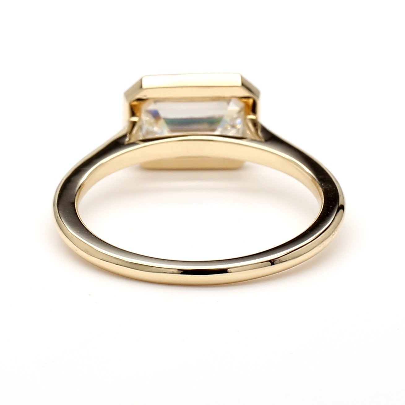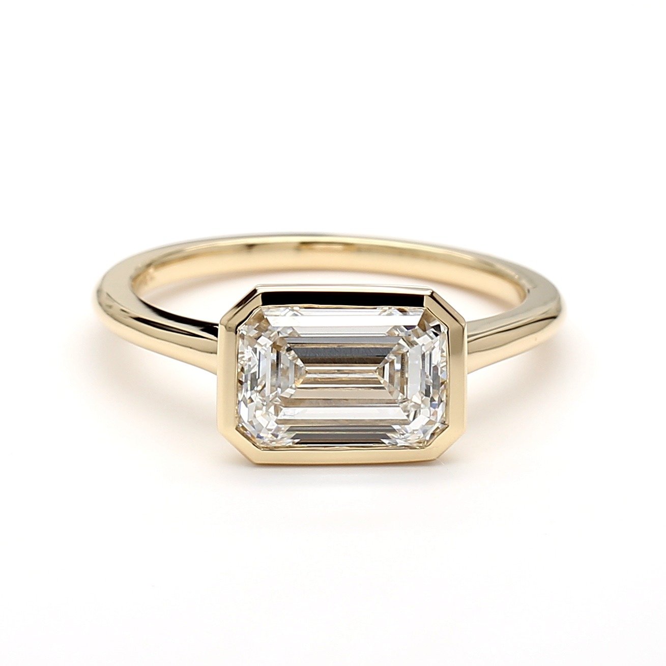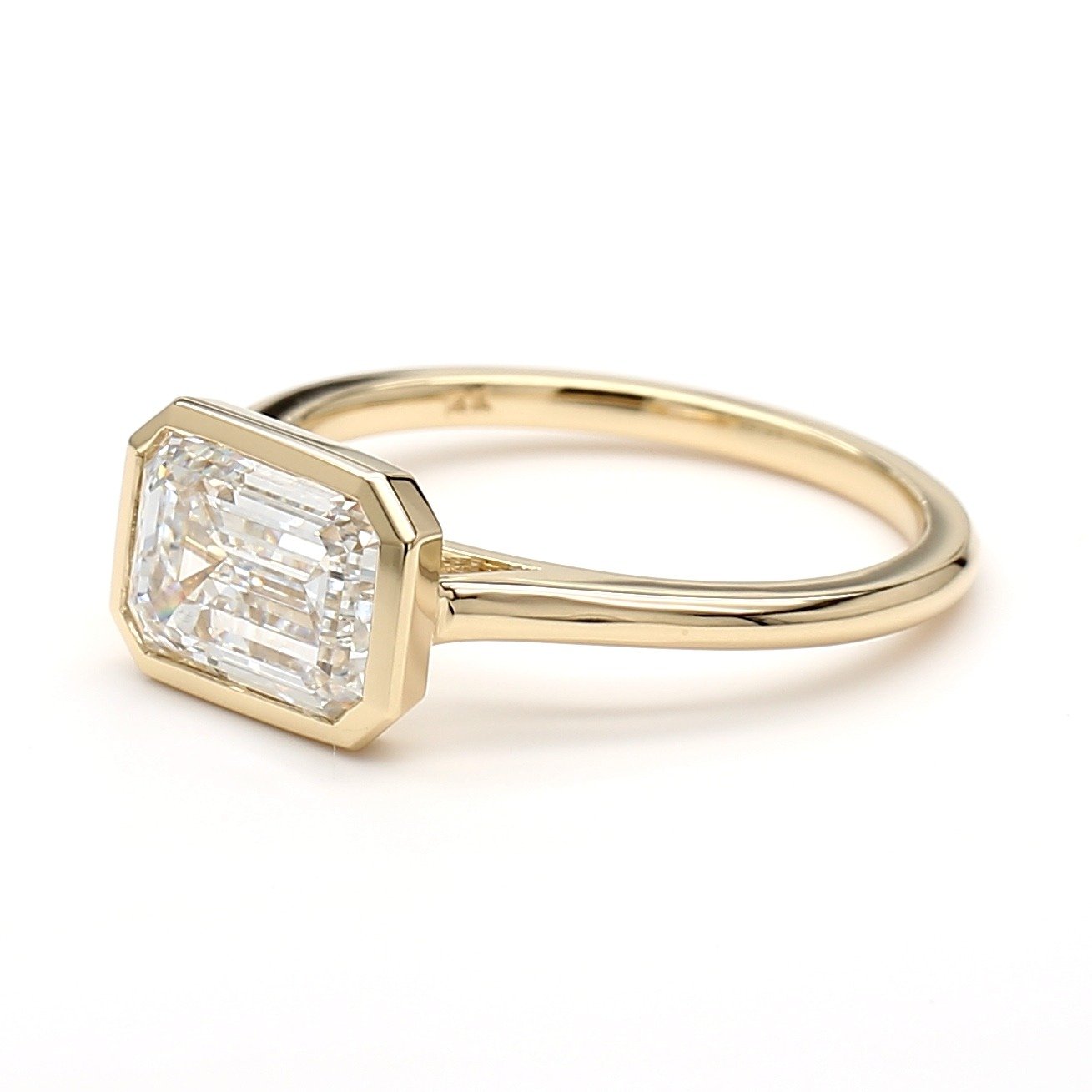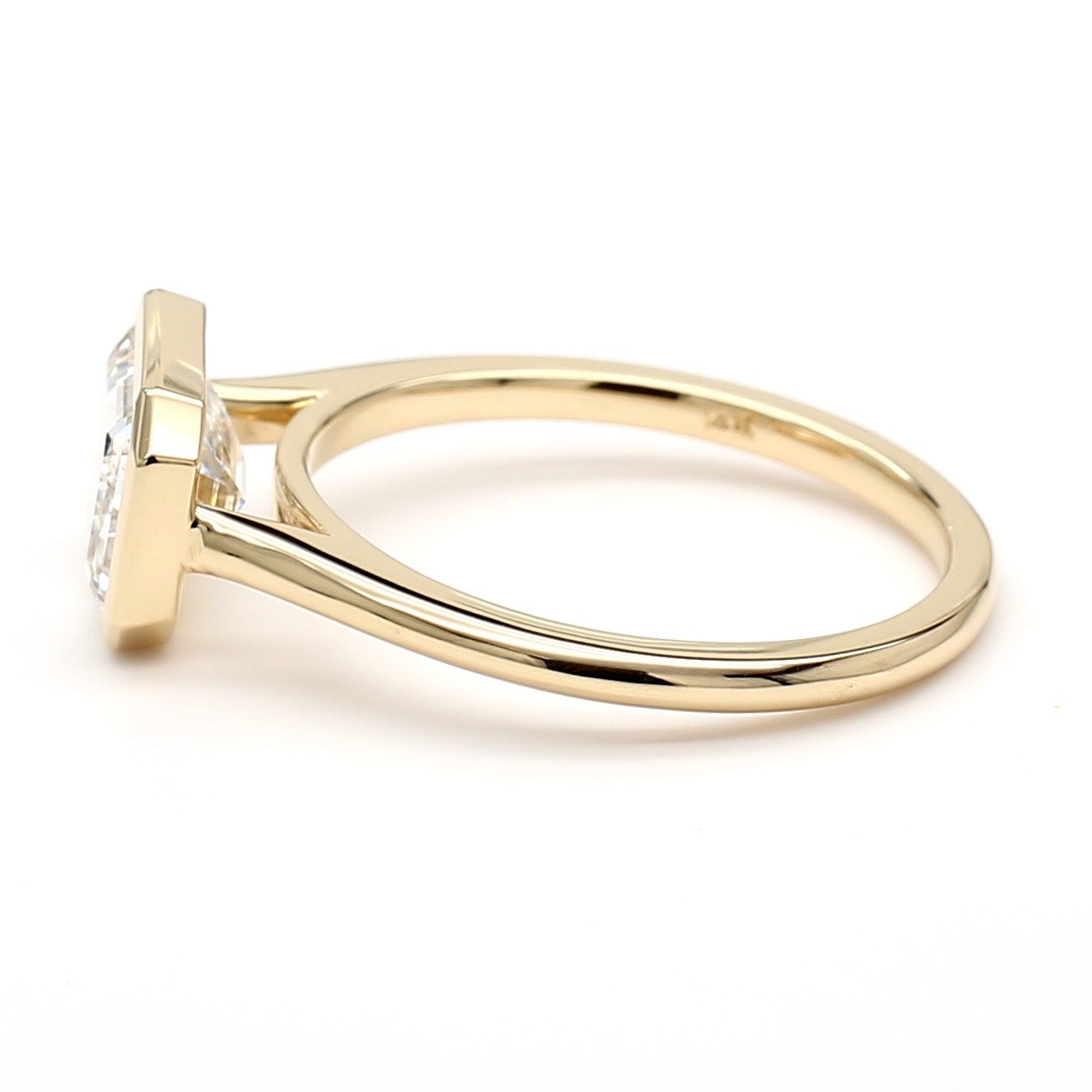 The Liliana Diamond Engagement Ring is a modern masterpiece that exudes elegance and refinement. Featuring a mesmerizing emerald-cut diamond set within a sleek bezel setting, this ring offers a contemporary yet timeless appeal. The minimalist design highlights the diamond’s exceptional clarity and step-cut facets, allowing it to radiate sophistication. Crafted in warm yellow gold, the Liliana ring is perfect for those who appreciate understated luxury with a bold, architectural charm.