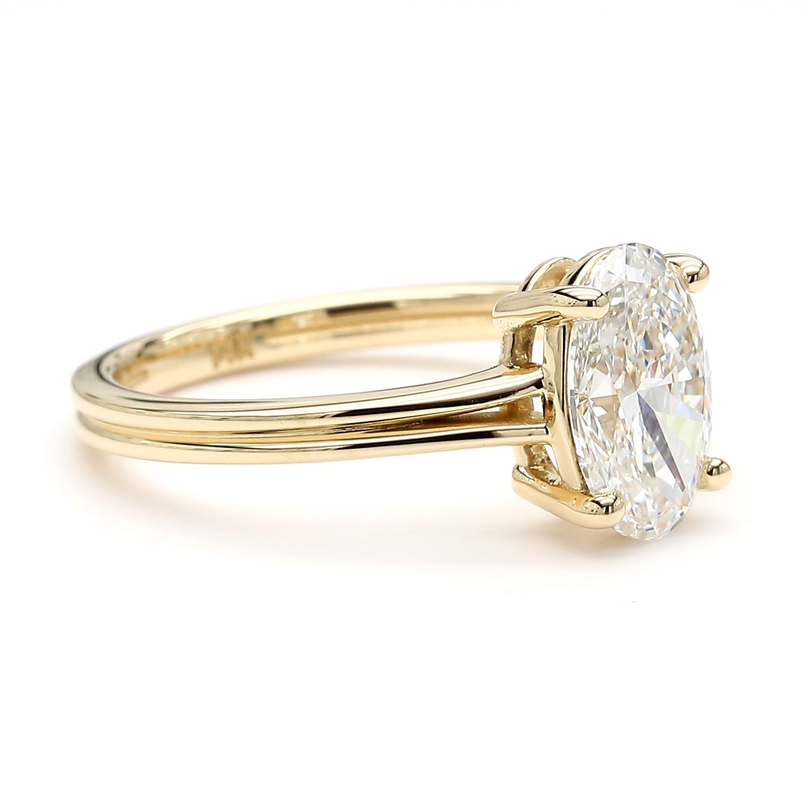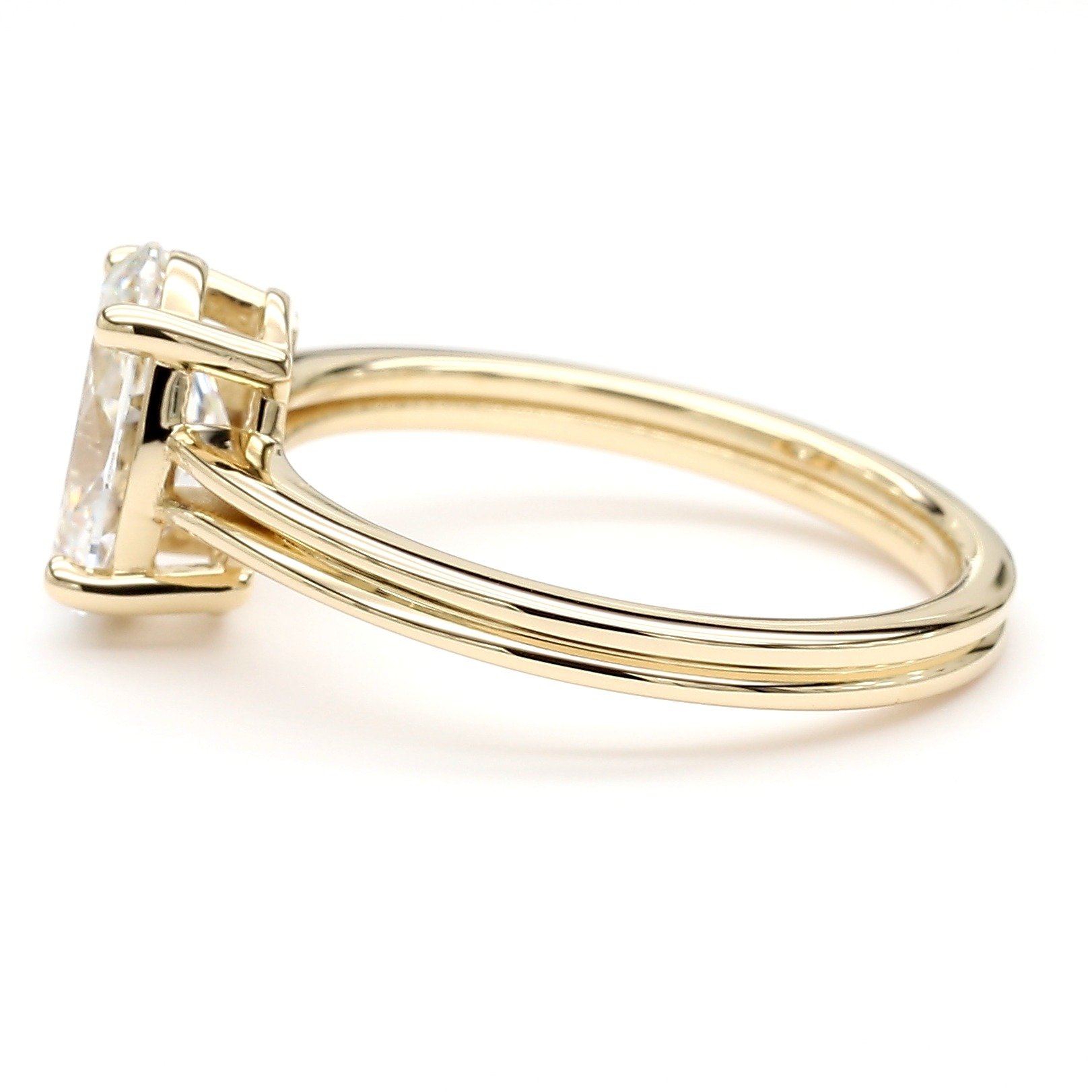 The Lilly Engagement Ring is a breathtaking blend of timeless beauty and contemporary design. This exquisite ring features a stunning solitaire diamond, expertly set as the focal point, radiating brilliance and sophistication. The delicate thin split shank band gracefully divides as it approaches the center stone, creating an elegant and modern silhouette that enhances the diamond’s natural allure. Crafted with meticulous attention to detail, the Lilly ring combines classic elegance with a touch of modern flair. The split shank design adds a unique and refined dimension, making it a perfect choice for those who seek a ring that is both traditional and distinctive. The slender band ensures a lightweight and comfortable fit, while the split shank adds a subtle yet captivating detail that sets this ring apart. Named after the purity and grace of a lily, this ring symbolizes love, commitment, and timeless beauty. Its versatile design pairs effortlessly with any wedding band or stands alone as a statement of understated elegance. The Lilly Engagement Ring is more than just a piece of jewelry—it’s a celebration of your unique love story, designed to be cherished for a lifetime. Complete this setting with your choice of center stone and metal preference.
