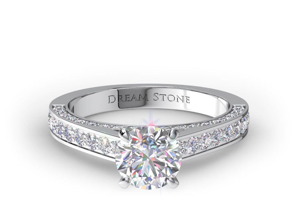 This white gold setting features pave-set diamonds on three sides for a perfect accent of brilliance and fire for your choice of center diamond. Over 1/2 of a carat total diamond weight.