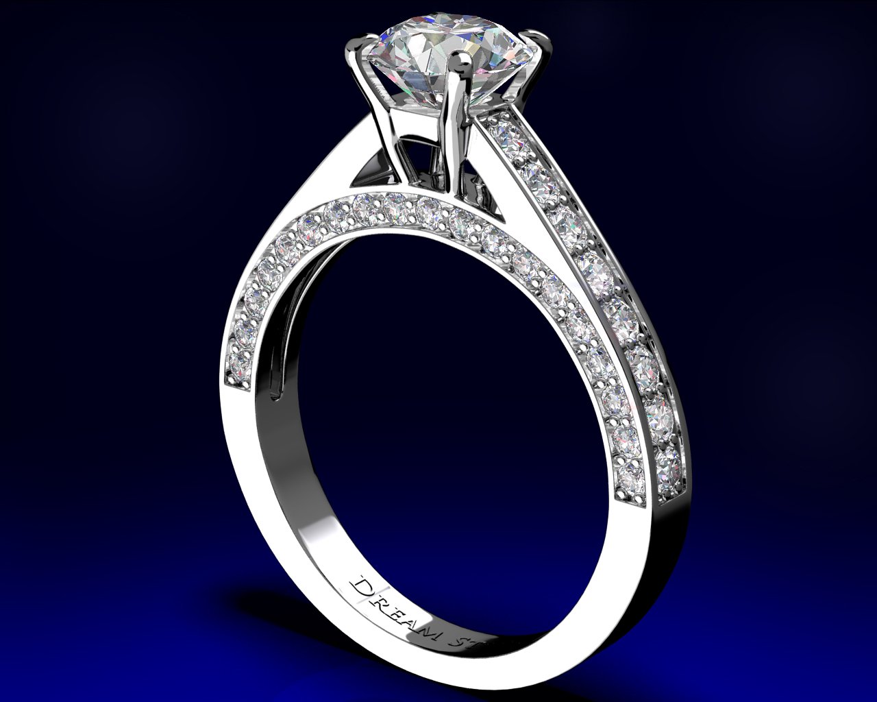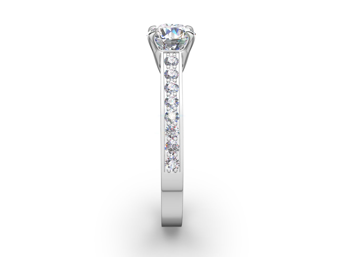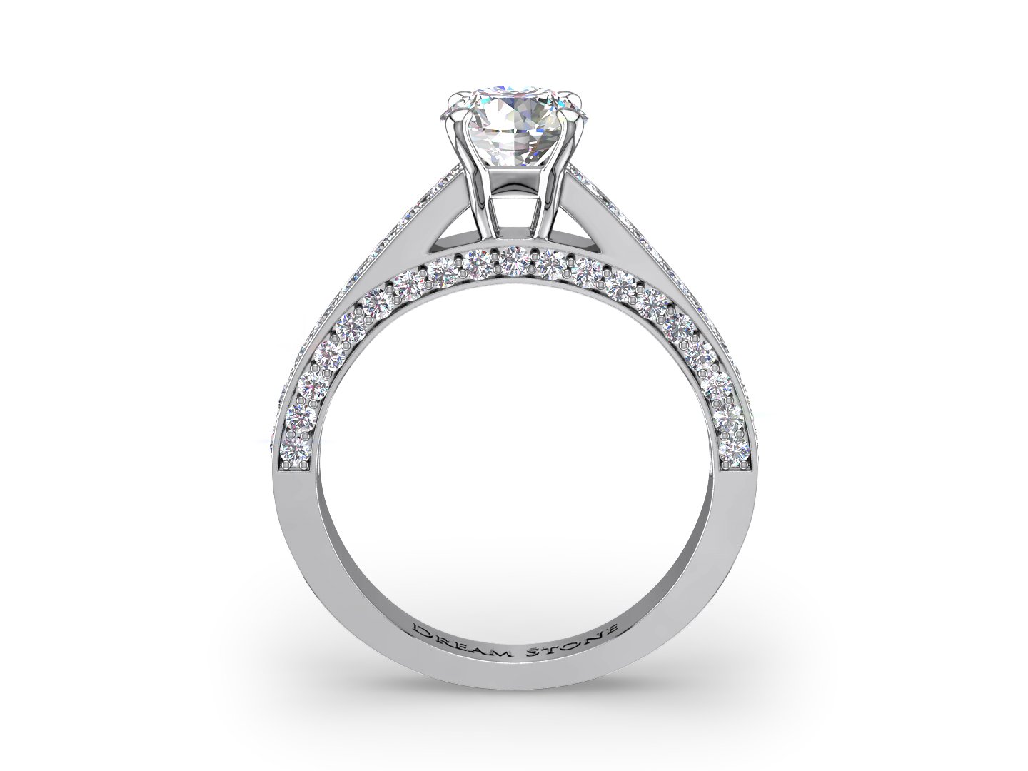 This white gold setting features pave-set diamonds on three sides for a perfect accent of brilliance and fire for your choice of center diamond. Over 1/2 of a carat total diamond weight.