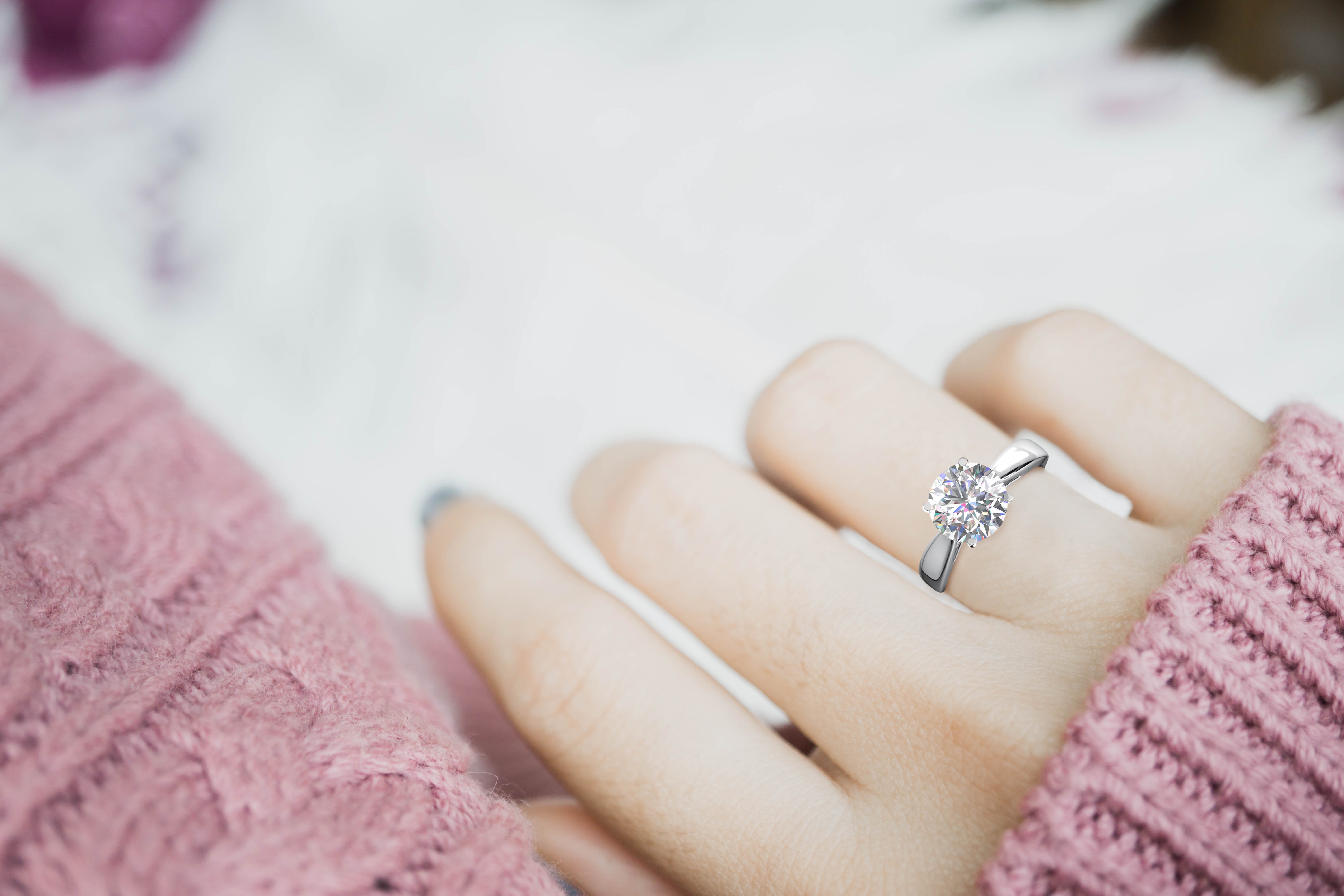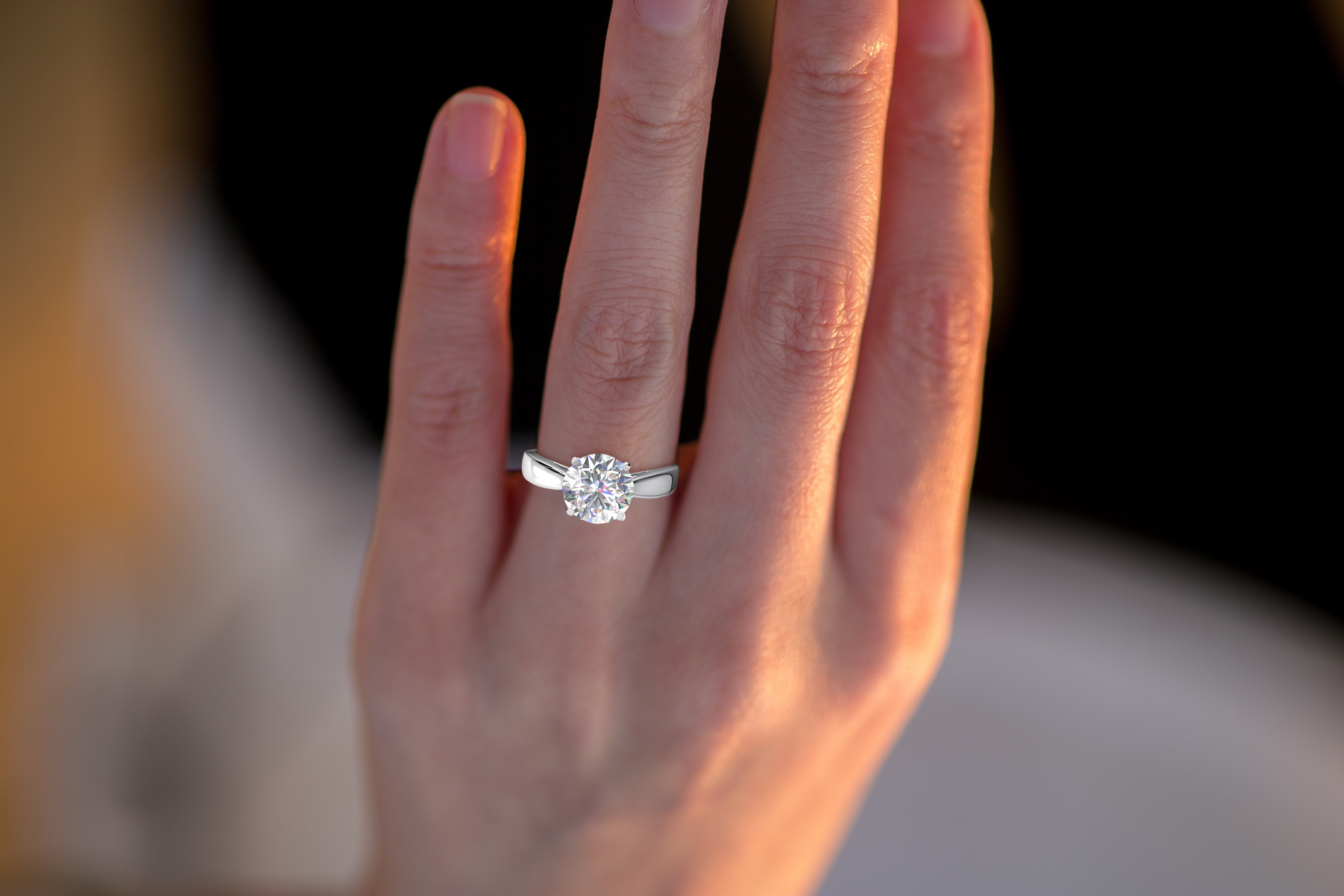 The Nova design has gorgeous curves tapering slightly towards the center. The center diamond is secured in a basket.
