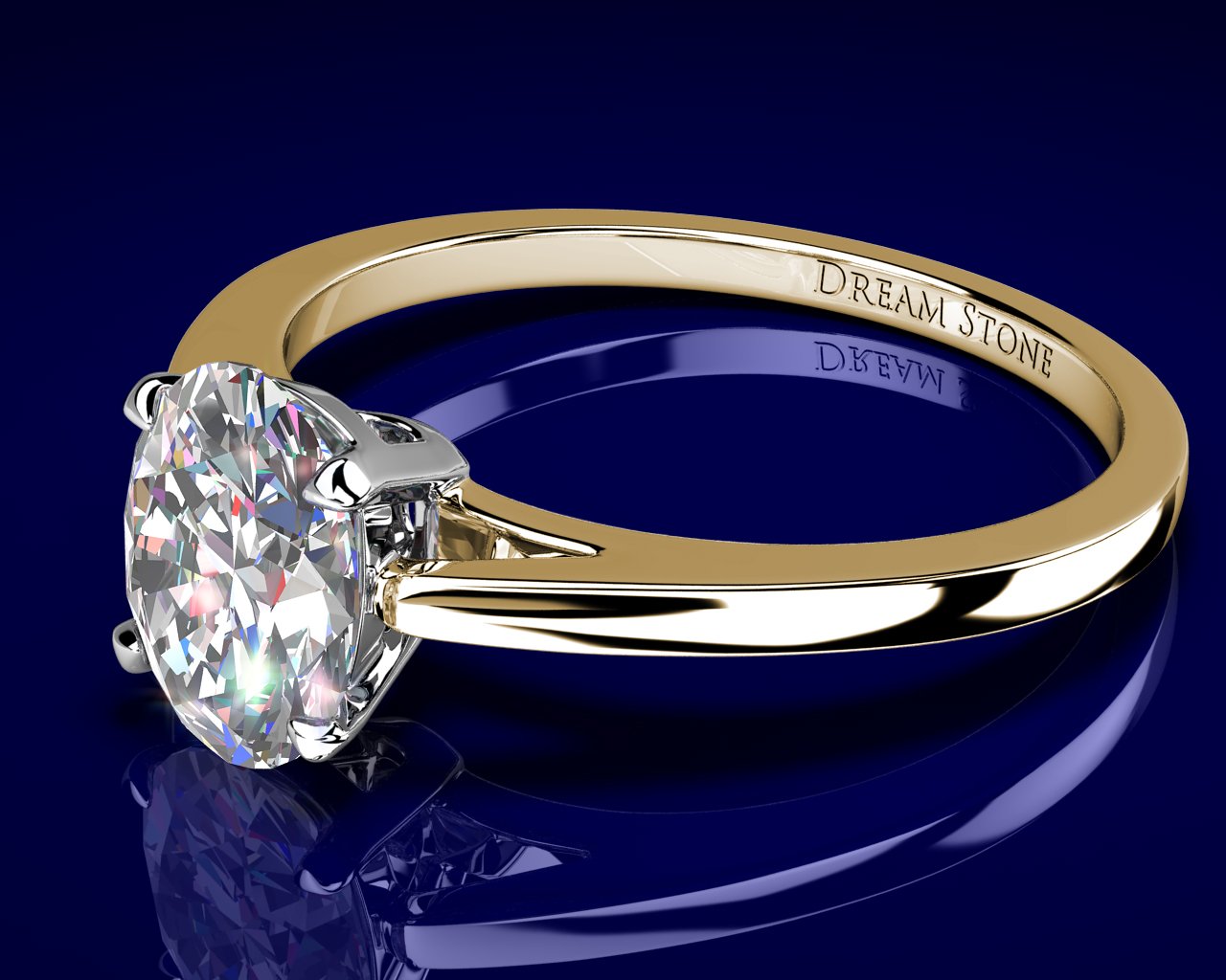 Elegant and sleek, this solitaire setting has refined lines that gently rises towards your choice of center stone. (We do not inscribe the DreamStone logo onto any ring)