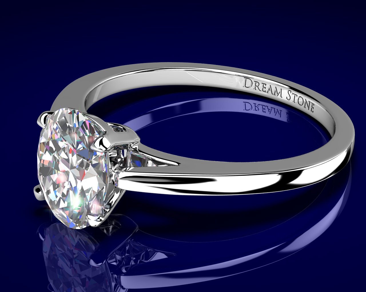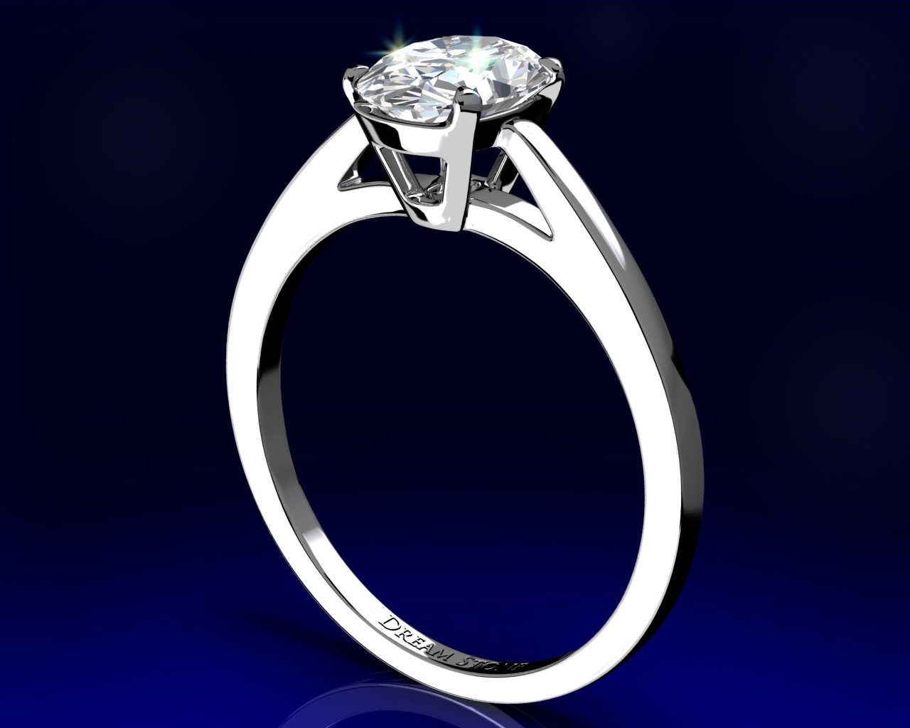 Elegant and sleek, this solitaire setting has refined lines that gently rises towards your choice of center stone. (We do not inscribe the DreamStone logo onto any ring)