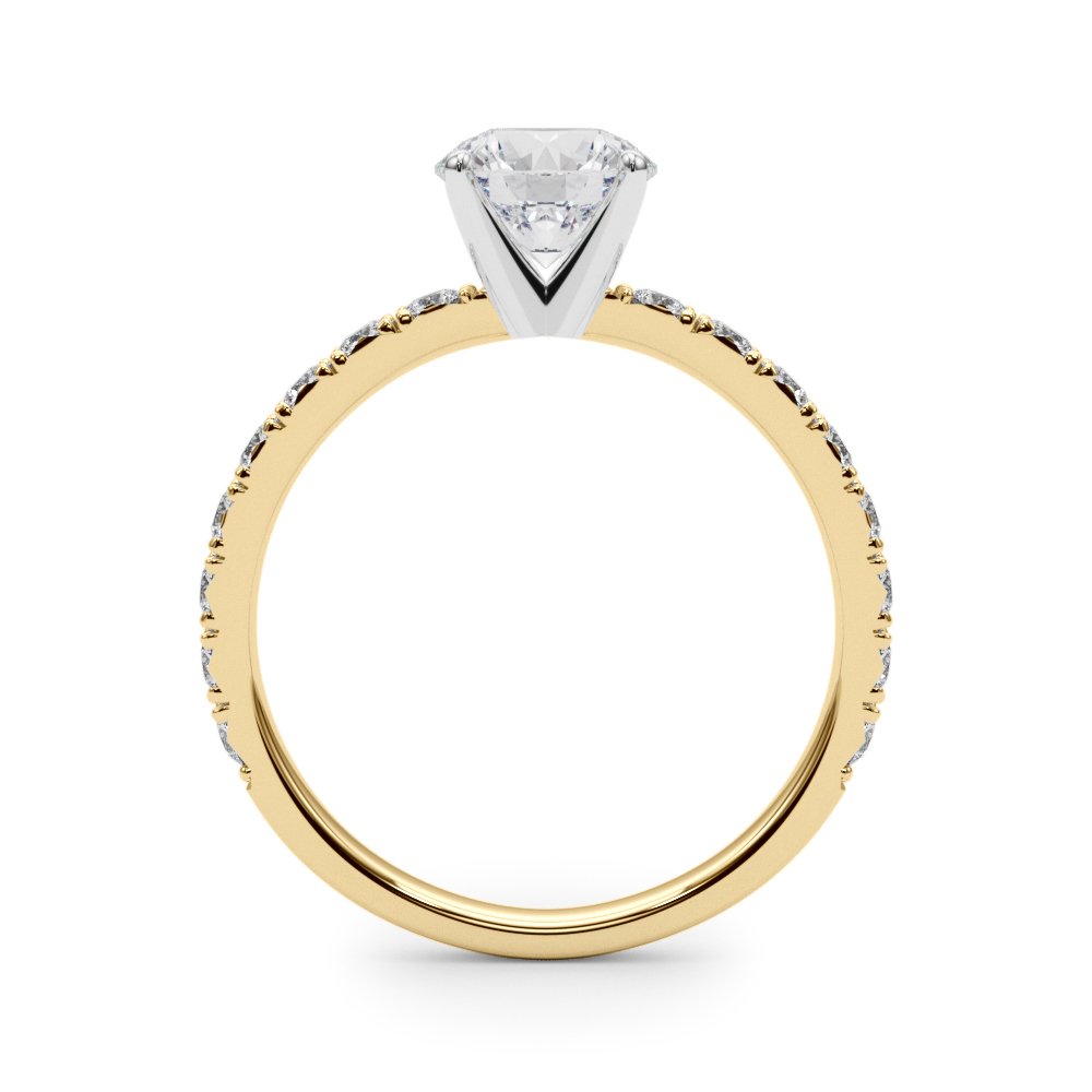 Reina diamond engagement ring. The Reina diamond engagement ring features gorgeous round brilliant diamonds 3/4 way down the band. Each stone is set with french cut prongs for a clean and smooth look. Available in 14k or 18k White, Yellow, Rose Gold or Platinum. Complete this ring with your choice of center stone.