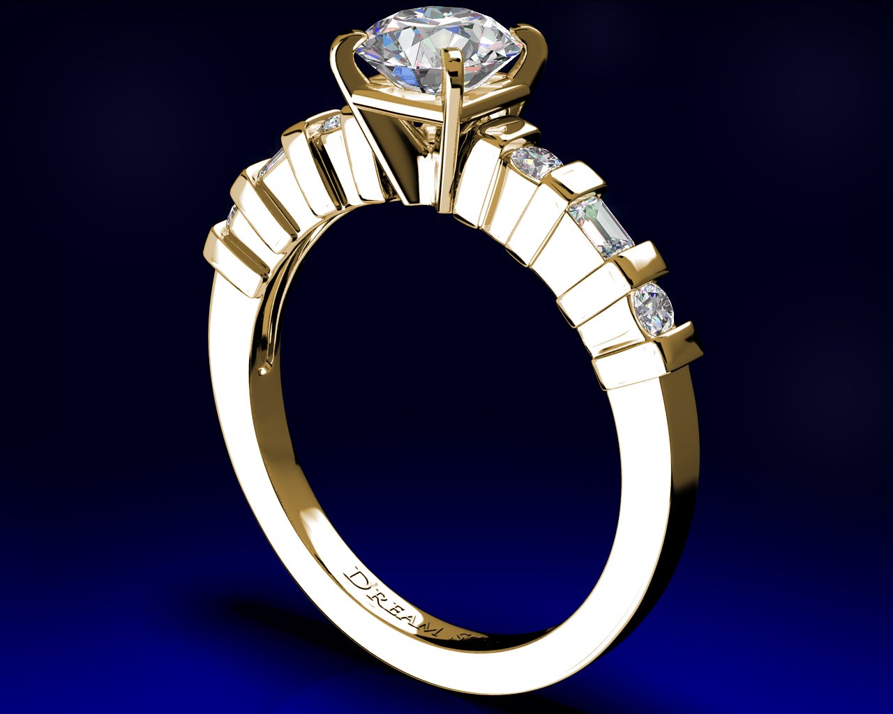 ROUND & BAGUETTE DIAMOND ENGAGEMENT RING in 14K Yellow Gold