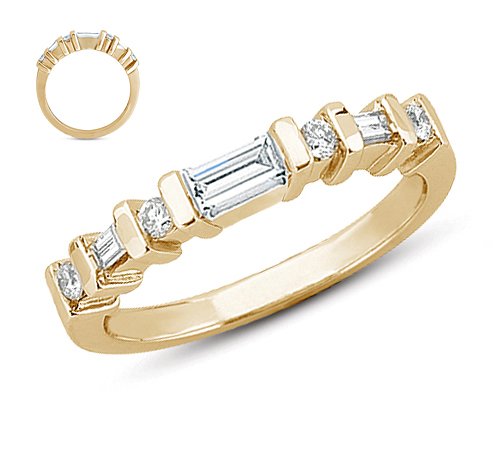 This set features round and baguette alternating diamonds. The set wears flush together with the diamonds lined up for a perfect match.