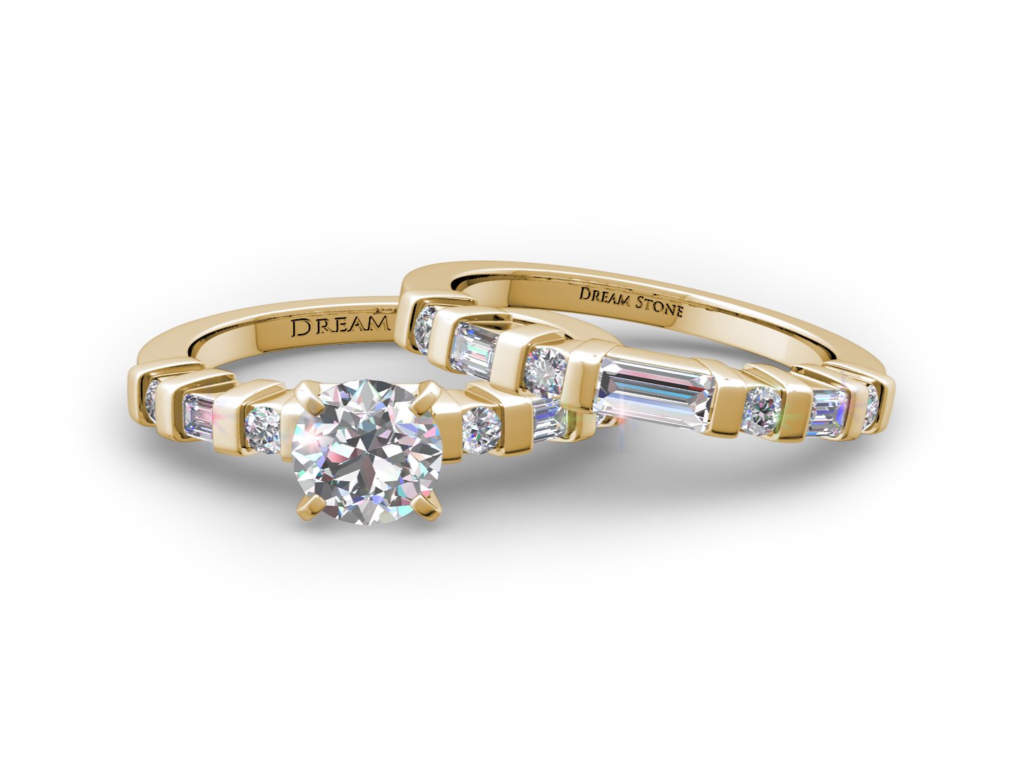 ROUND AND BAGUETTE DIAMONDS SETTING WITH MATCHING BAND in 18K Yellow Gold