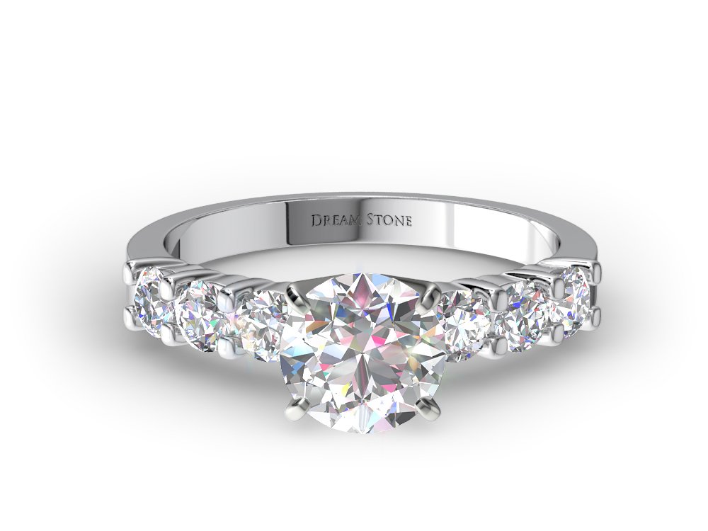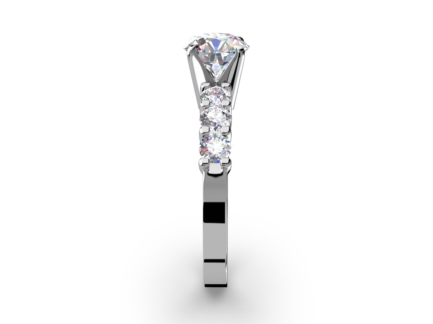 For round cut lovers, this setting offers three gorgeous round-cut diamonds on either side of your center stone. Pair this setting with your choice of center diamond. Customize this setting with your preferred metal.