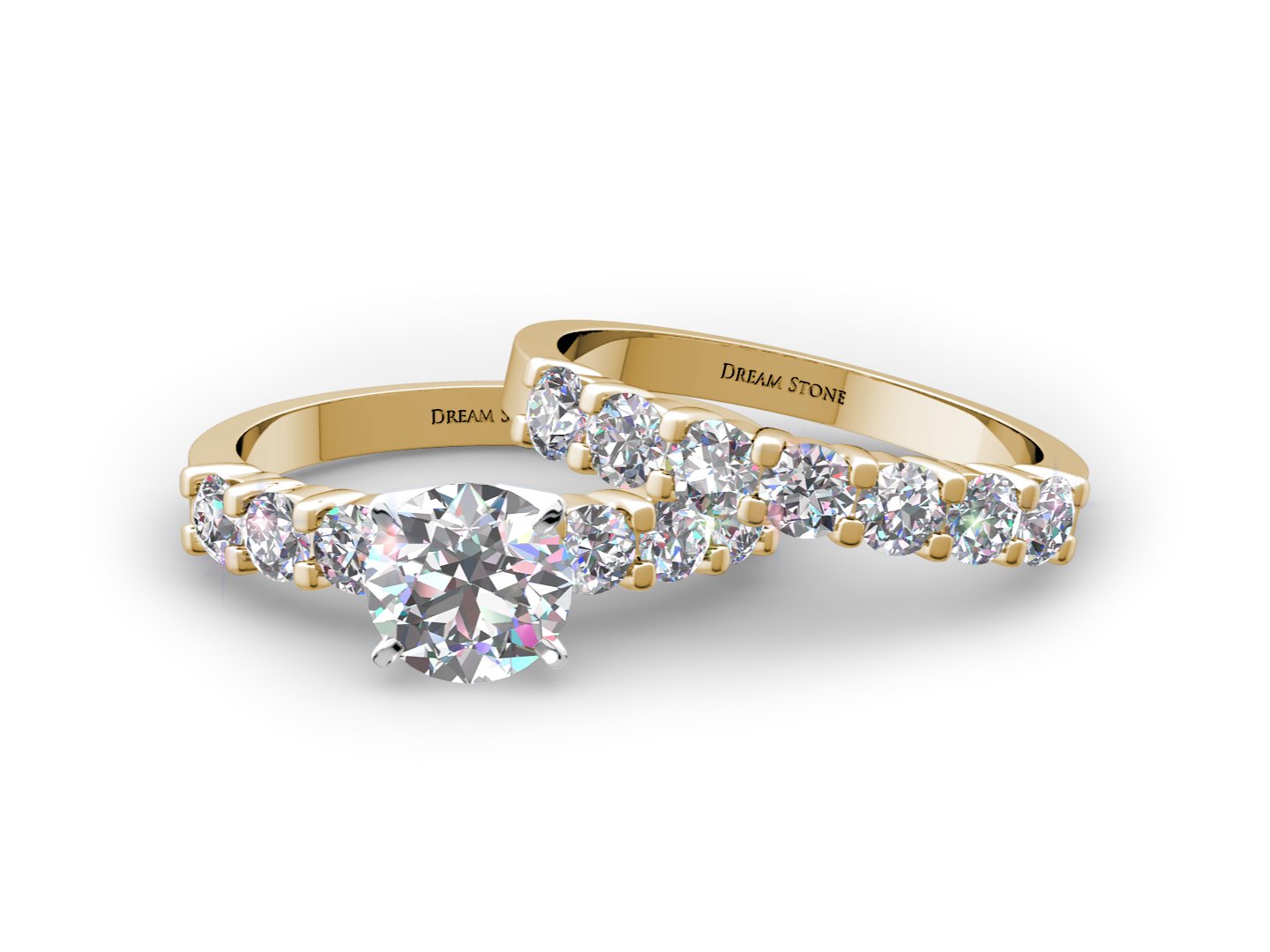 ROUND DIAMOND SIDE-STONES WITH MATCHING BAND in 18K Yellow Gold