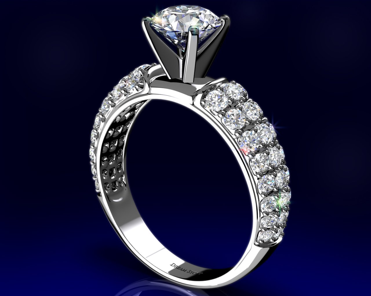 The Scarlet diamond engagement ring is a spectacular hand-crafted setting with three rows of pave-set diamonds. 3/4 carat total diamond weight offers a brilliant accent to your choice of center stone.