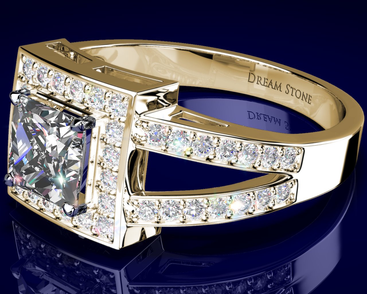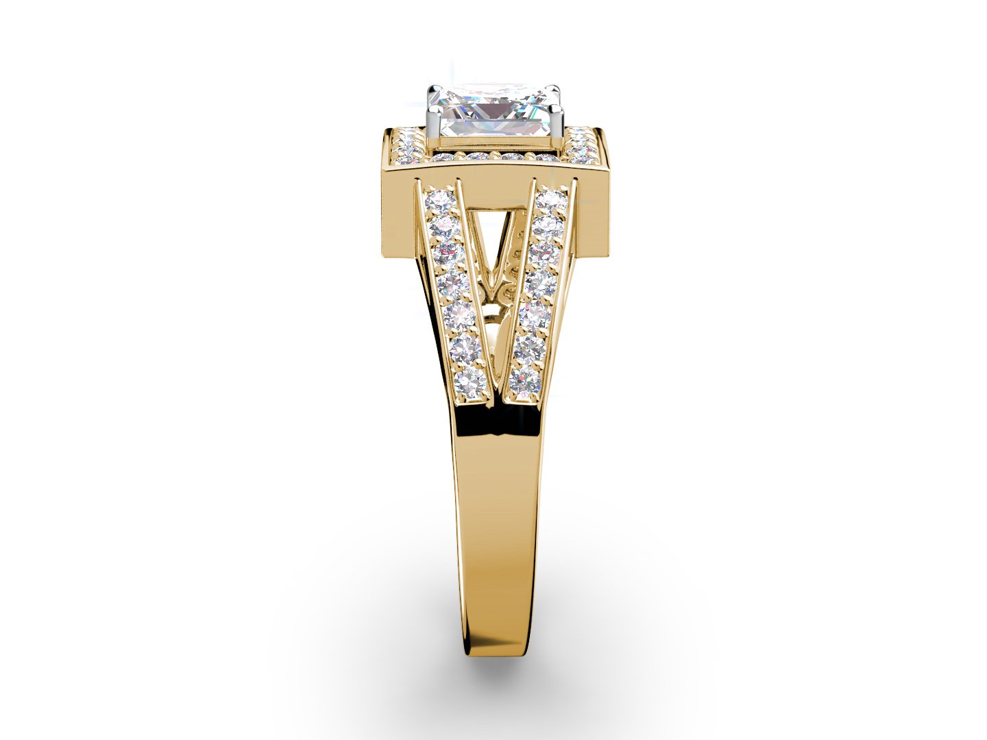 SPLIT SHANK HALO DIAMOND ENGAGEMENT RING in 18K Yellow Gold