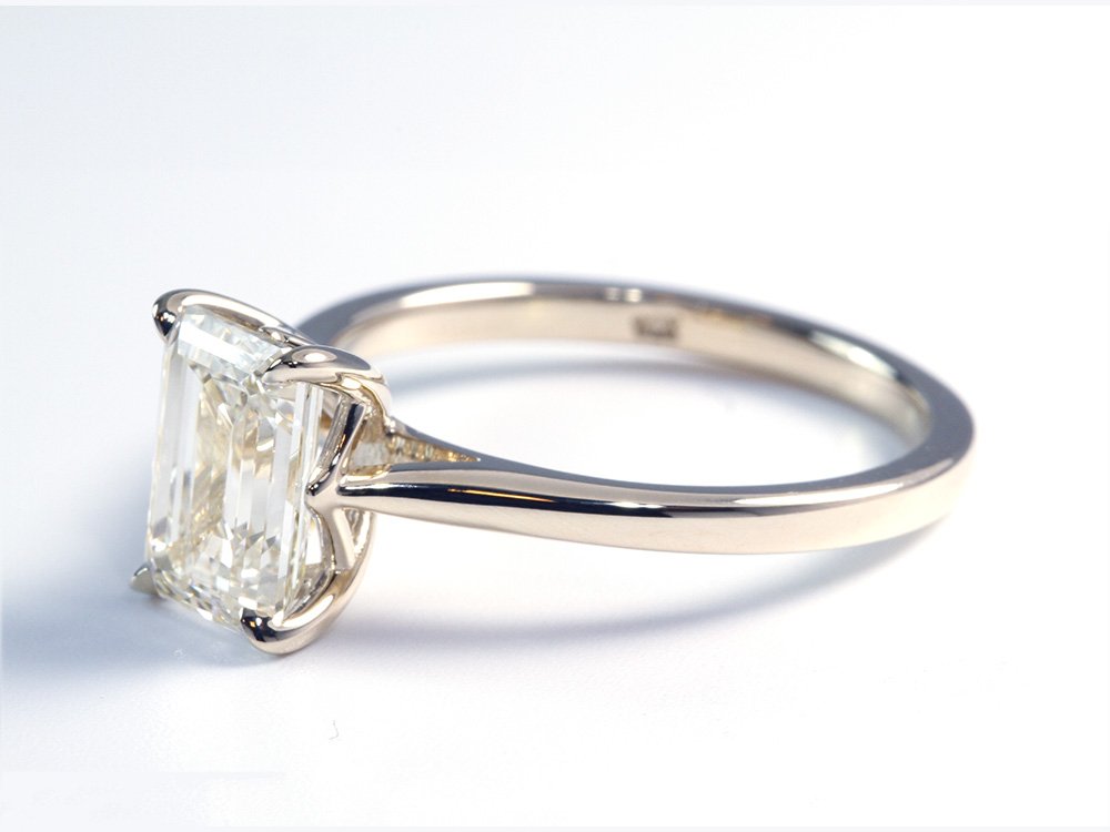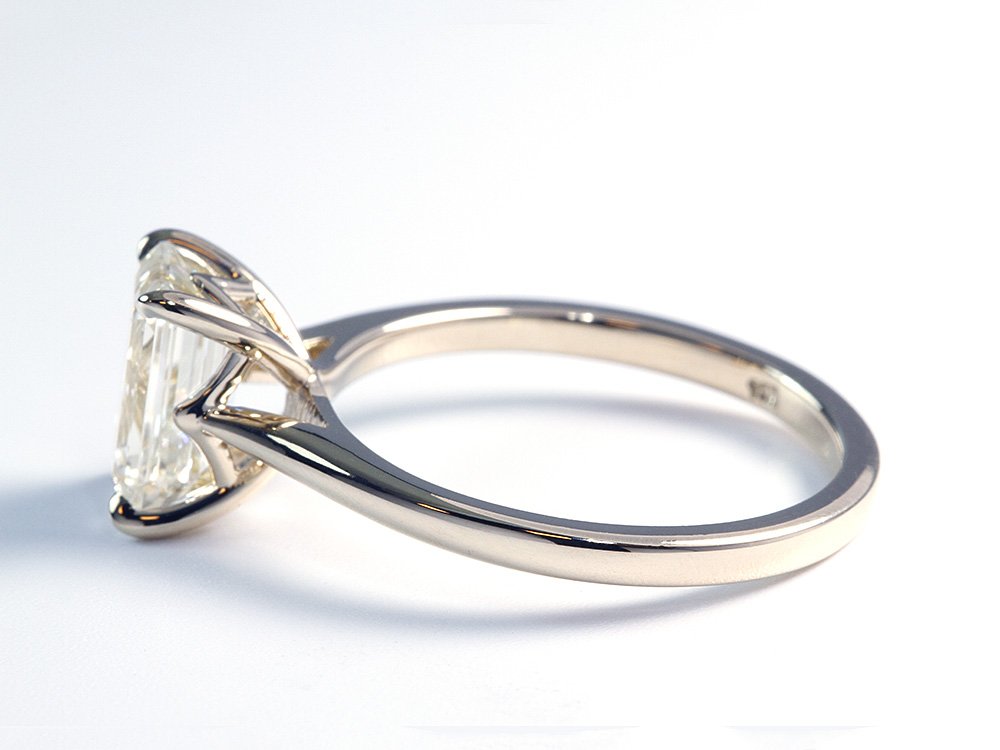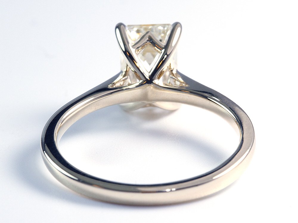 One of our best sellers, the Chloe Diamond Engagement Ring features a rounded band that slopes gently upwards towards your center diamond. The crown design criss cross to create a beautiful accent feature on either side and finish off to secure your diamond with craw prongs. The height of this setting is consider medium profile. If you would like to adjust band thickness or prong style, simply let us know in the special instructions at checkout. This setting is available, 14K and 18K white and yellow gold, rose gold, and platinum.