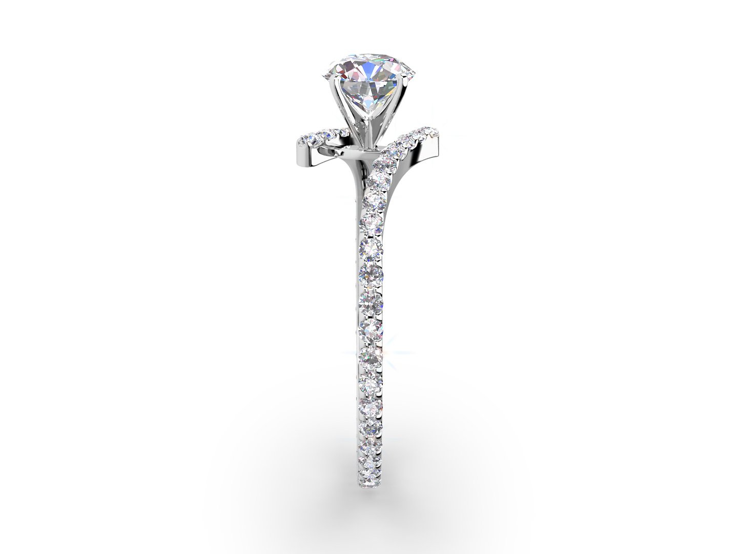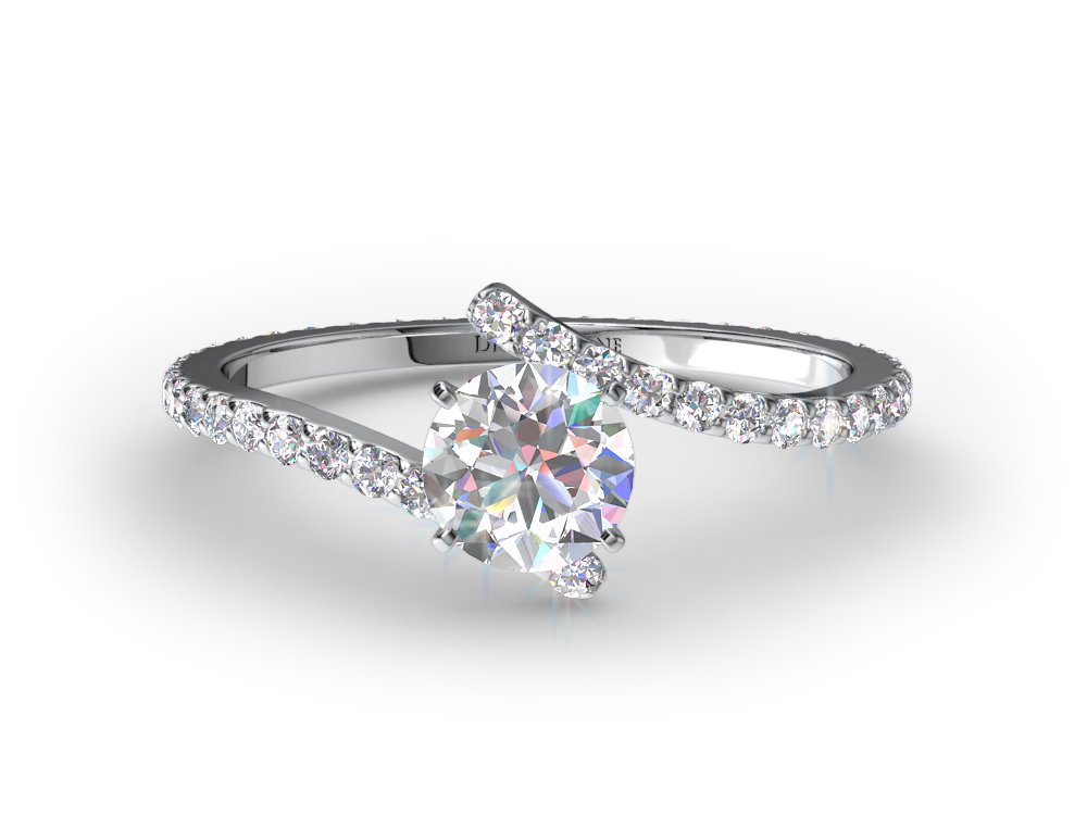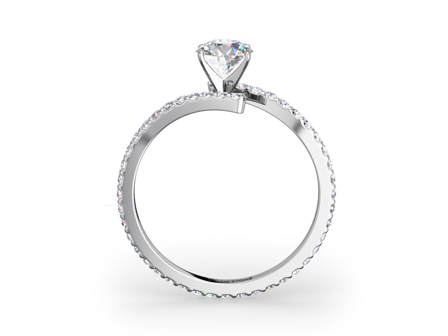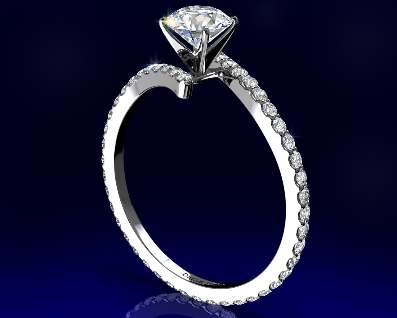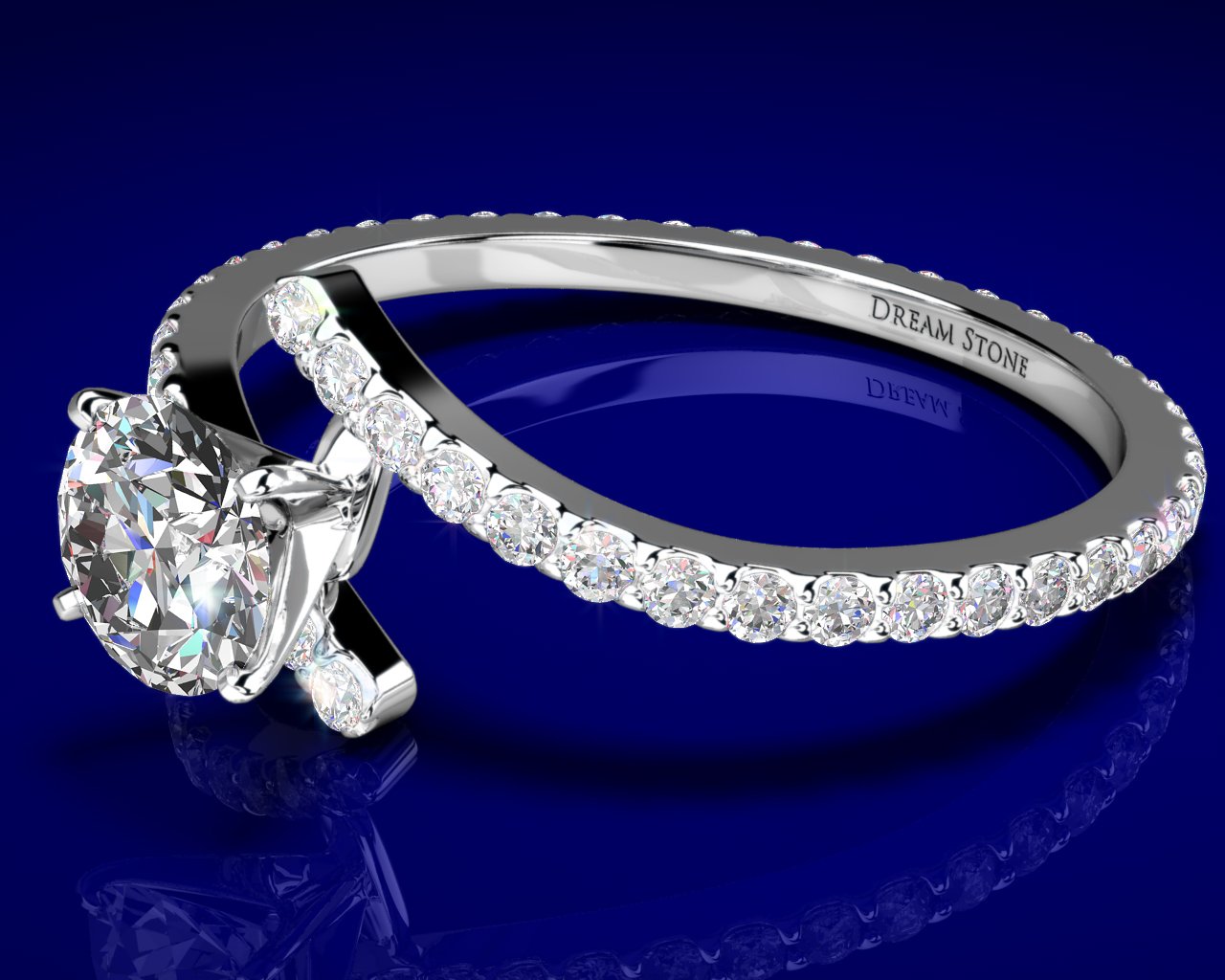 This intriguing setting features a modern design exclusive to DreamStone. 1/2 carat total weight of pave-set round brilliant diamonds. Choose your own center diamond to complete this ring.