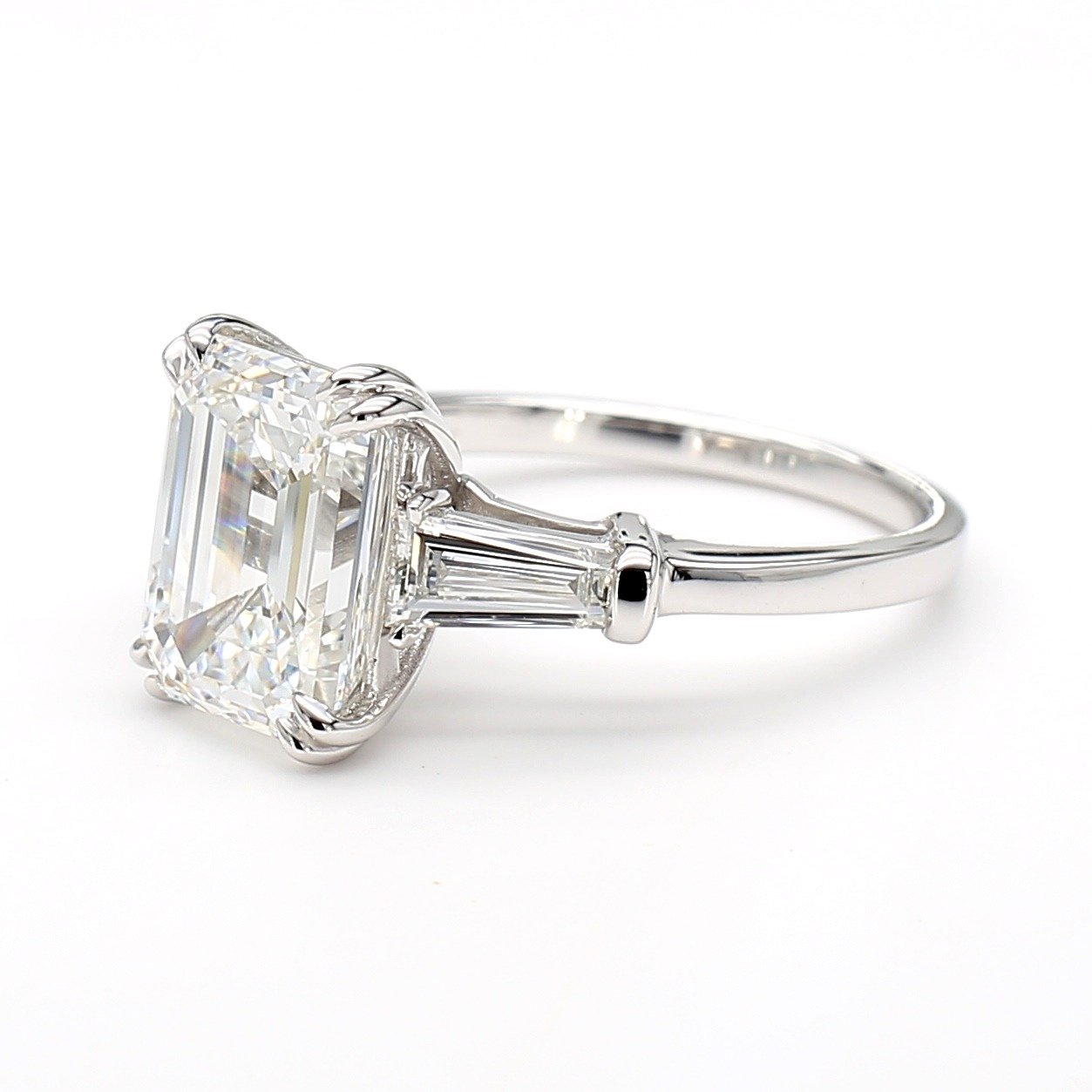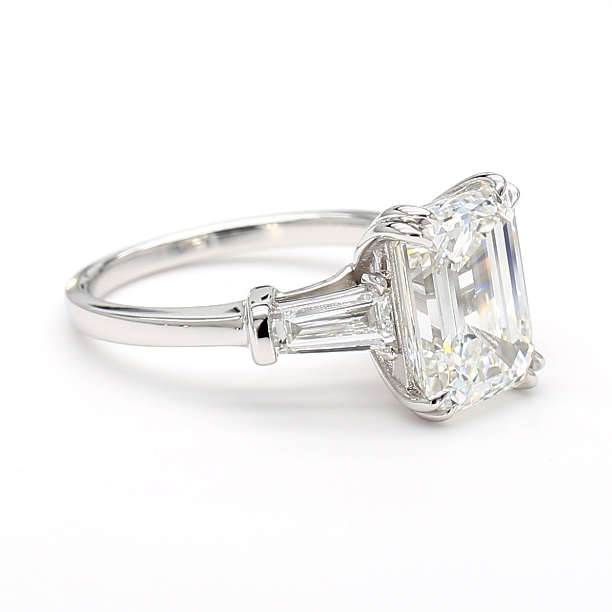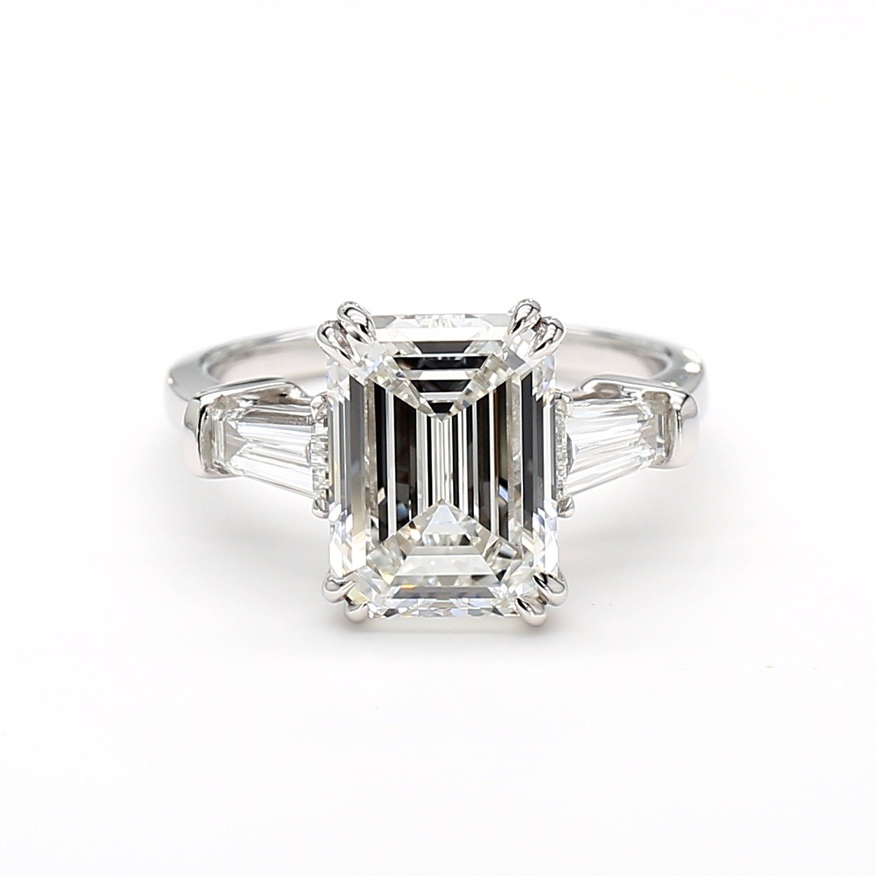 The Juliette Diamond Ring Elegant and timeless, The Juliette Diamond Ring is a masterpiece of refined beauty. Featuring a stunning center diamond flanked by perfectly tapered baguette side stones, this design creates a seamless flow of brilliance and sophistication. The baguettes gracefully frame the center stone, enhancing its presence with a touch of vintage-inspired charm. Completely customizable, The Juliette can be crafted with any diamond shape to suit your style. Shown here with double prongs for added security and a distinctive look, it can also be made with single prongs for a sleeker aesthetic. Available in your choice of metal, The Juliette is a true symbol of grace, strength, and timeless elegance.