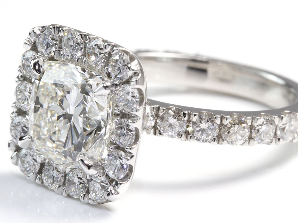 Experience the Motif diamond engagement ring. This stunning setting features large round brilliant diamonds in the halo and down the band stacking the total carat side diamond weight to 2 carats. Complete this setting by adding your center diamond.