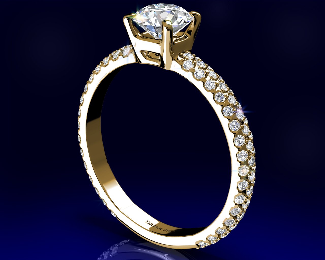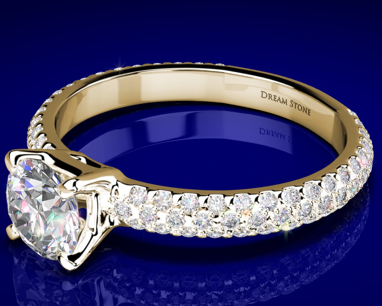 THREE-ROW PAVE-SET DIAMOND ENGAGEMENT RING in 18K Yellow Gold