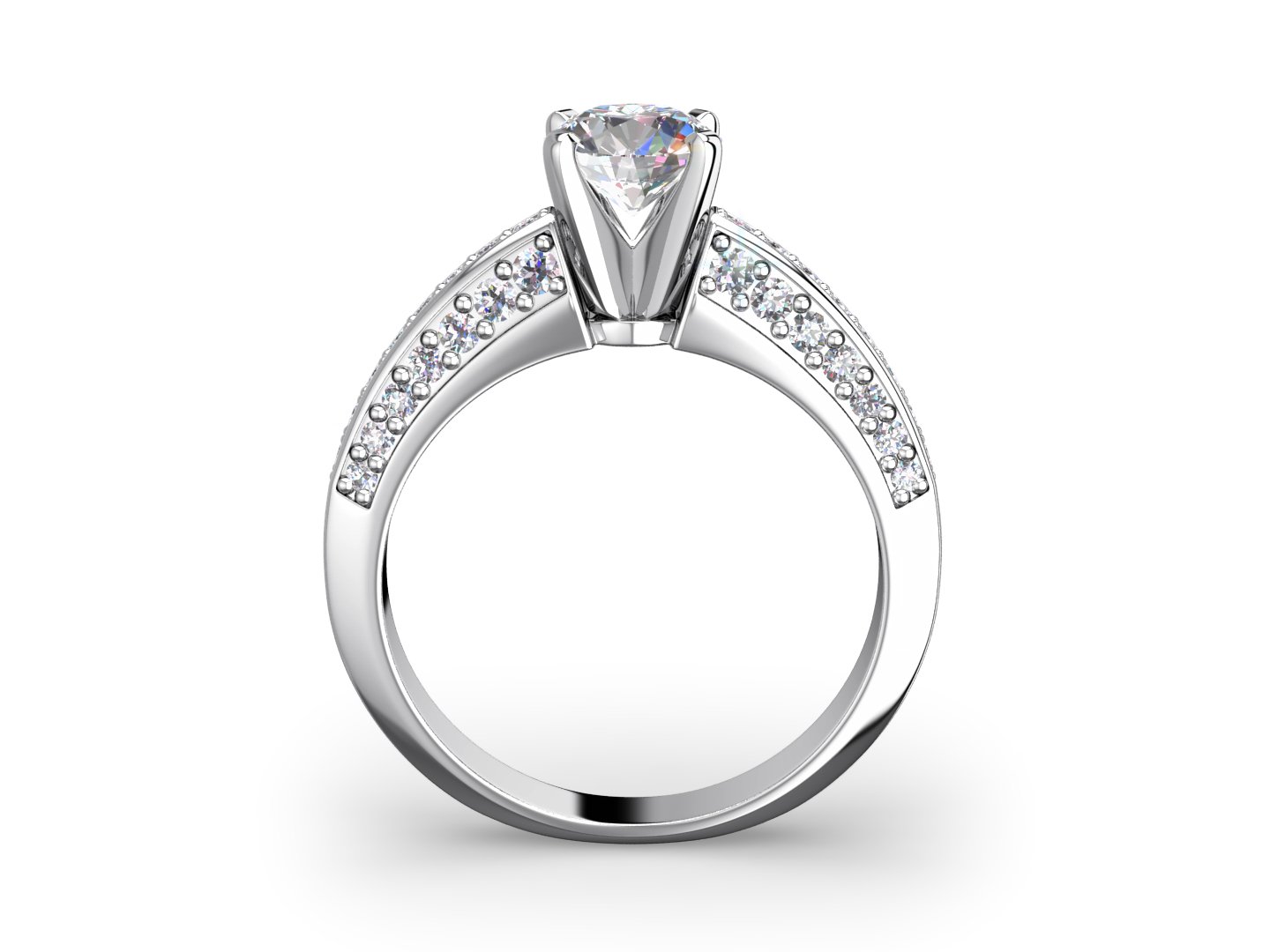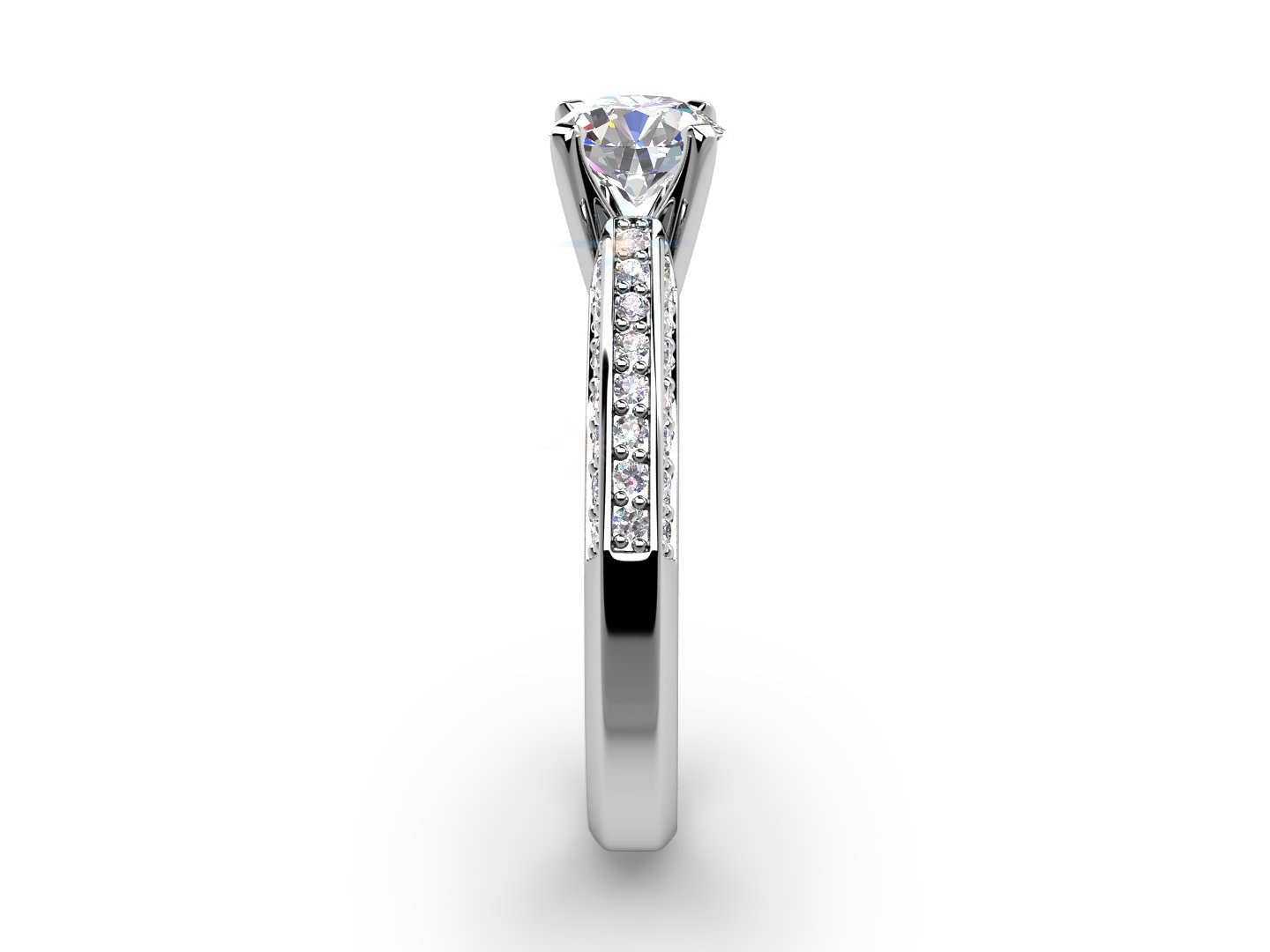 This engagement ring features round brilliant diamonds pave-set on three sides for ultimate brilliance.