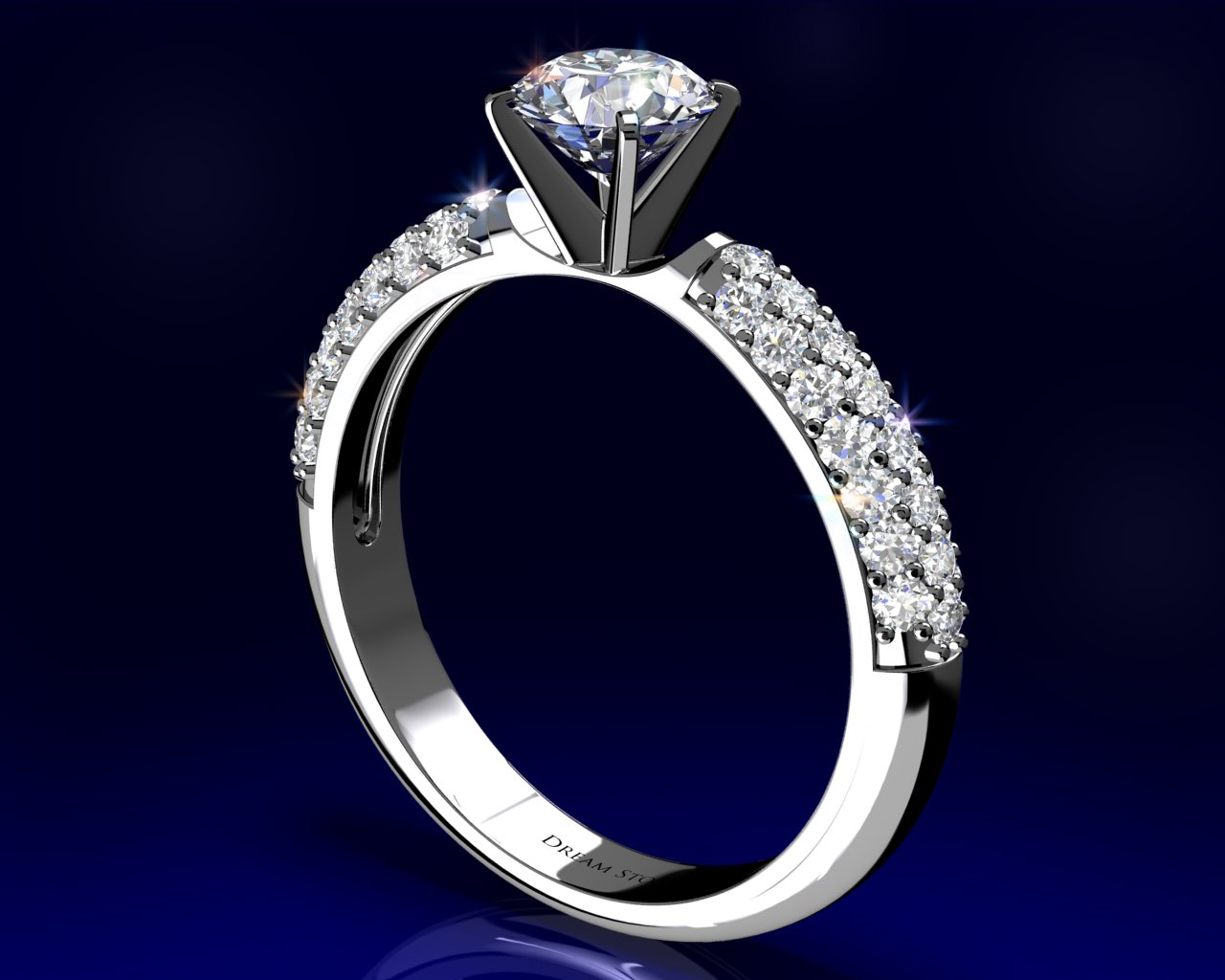 THREE-ROW PAVE-SET HALFWAY DIAMOND ENGAGEMENT RING in 14K White Gold