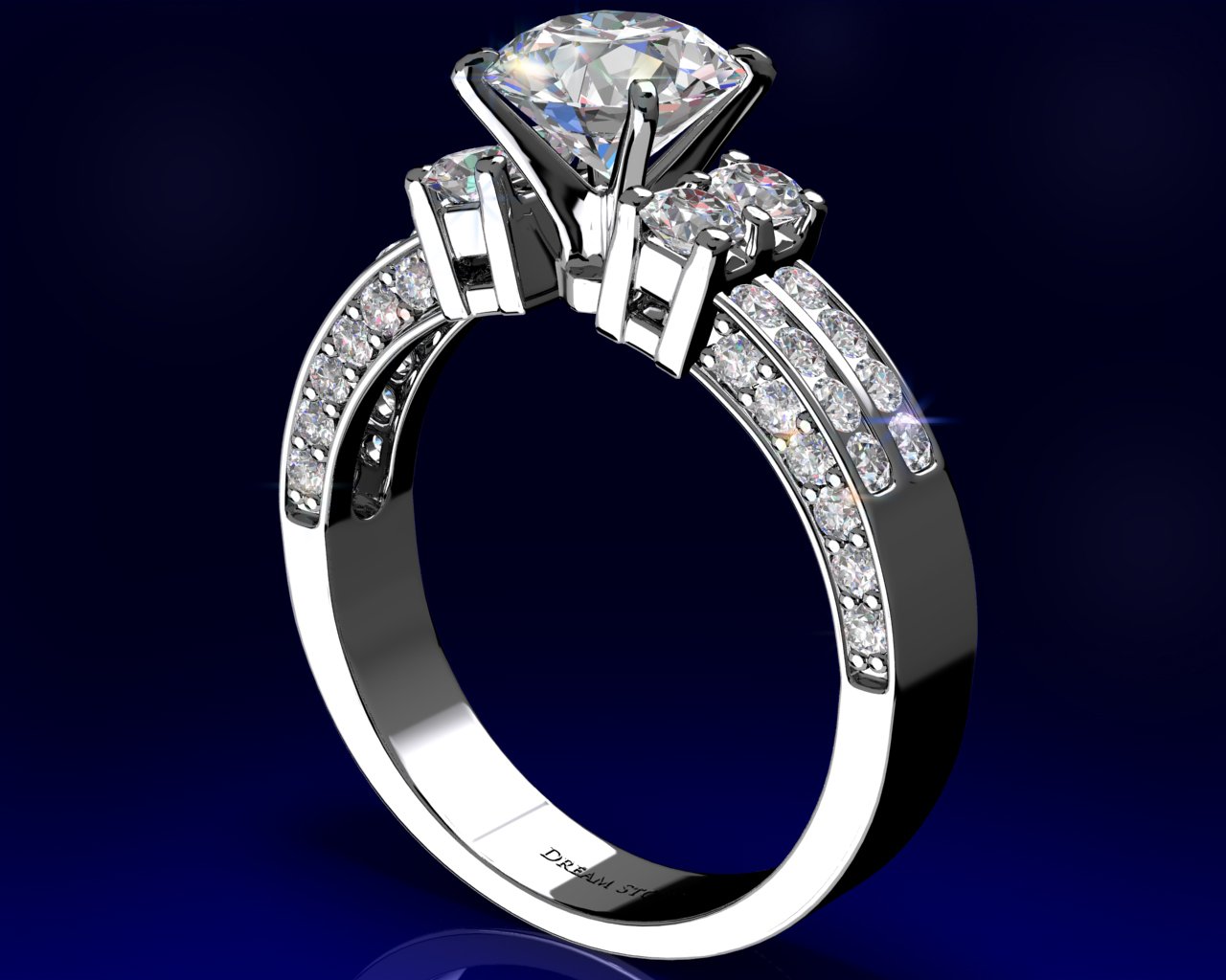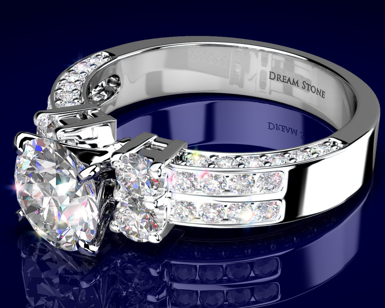 This setting features channel-set diamonds on three-sides for the ultimate brilliance. Complete this ring with your choice of center diamond.