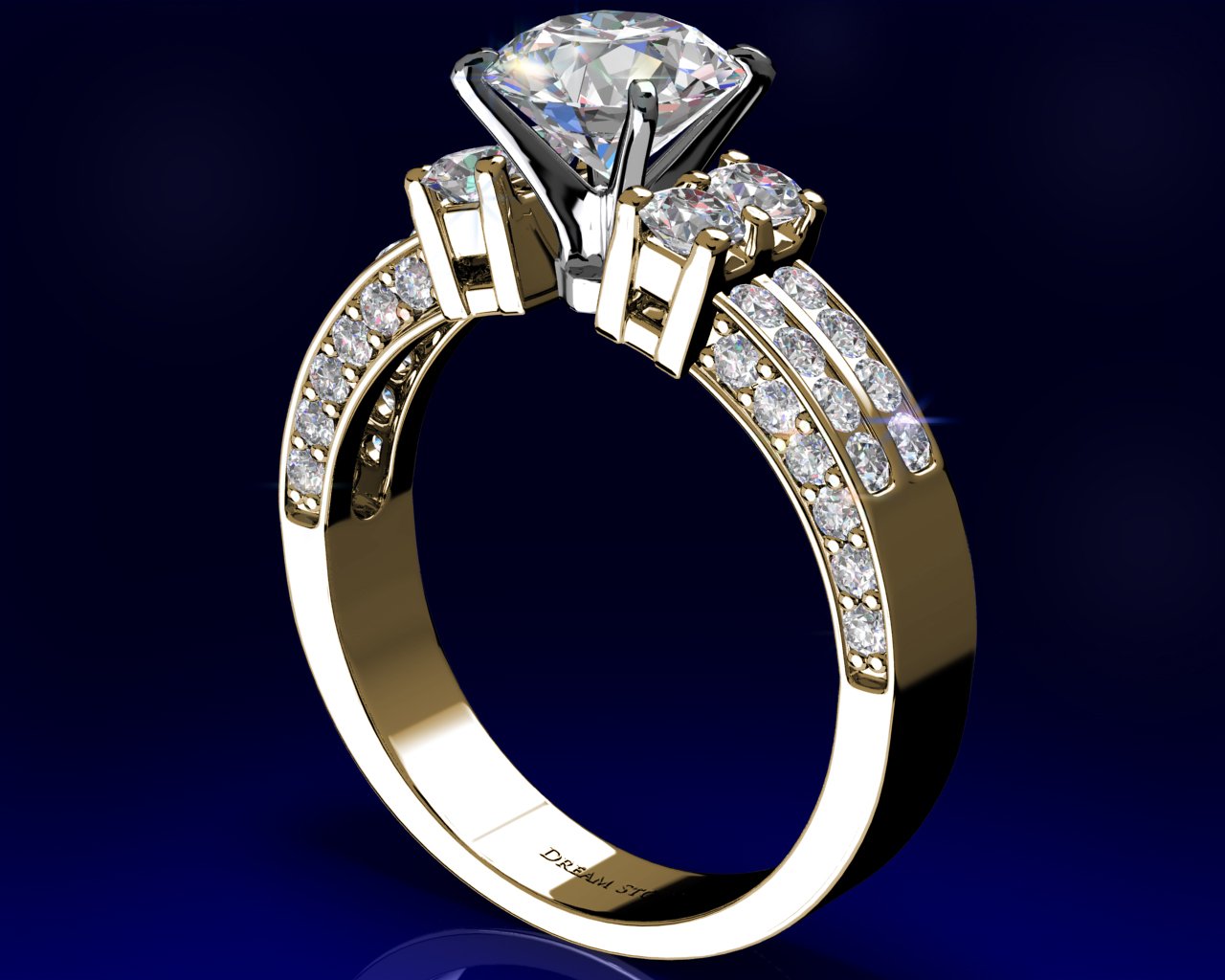 THREE-SIDED CHANNEL-SET DIAMOND ENGAGEMENT RING in 14K Yellow Gold