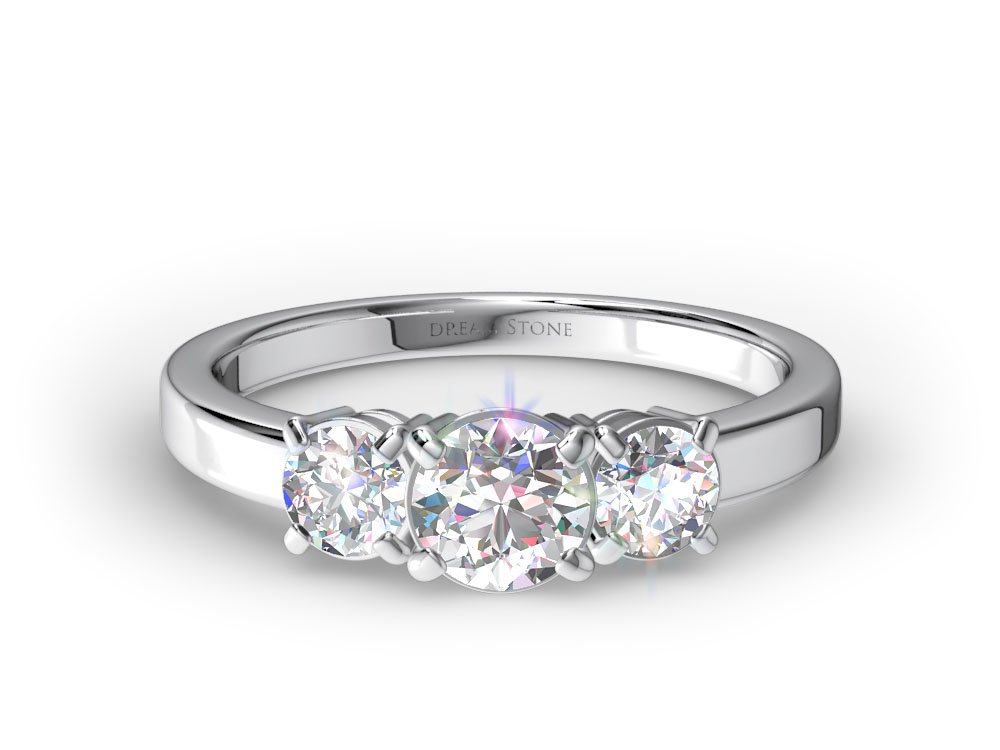 THREE-STONE BRILLIANT ROUND DIAMOND ENGAGEMENT RING in 18K White Gold