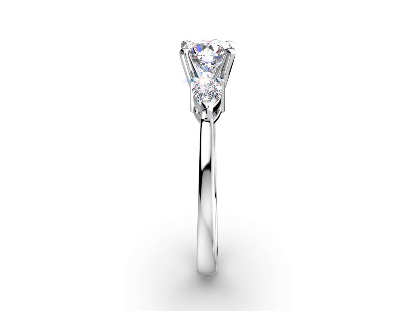 THREE STONE PEAR SHAPE DIAMOND ENGAGEMENT RING in 14K White Gold