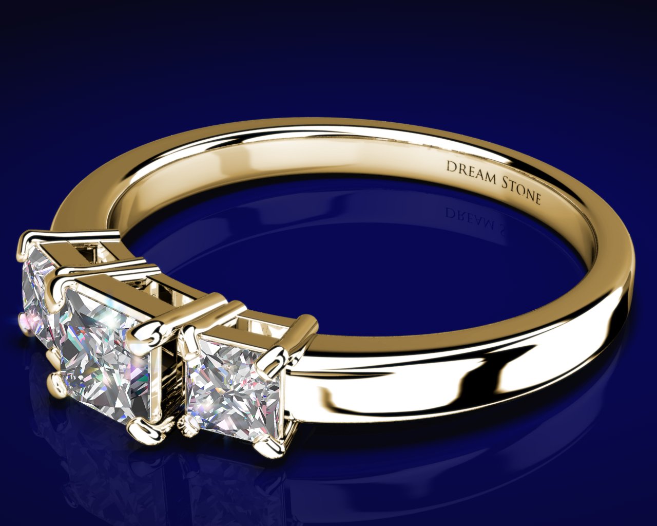 THREE-STONE PRINCESS-CUT DIAMOND ENGAGEMENT RING in 14K Yellow Gold