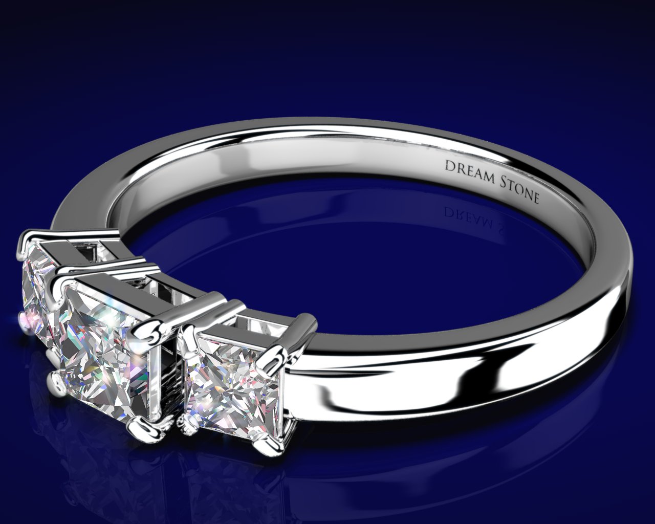 THREE-STONE PRINCESS-CUT DIAMOND ENGAGEMENT RING in Platinum