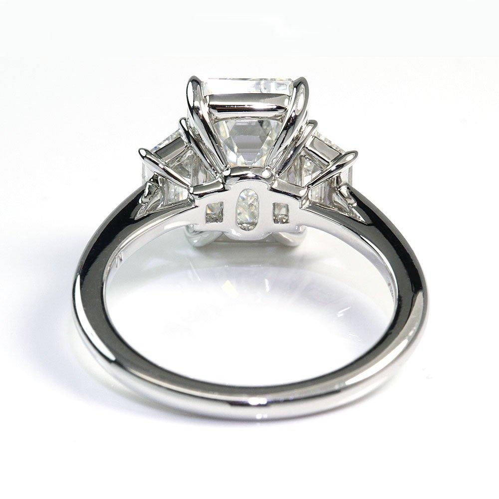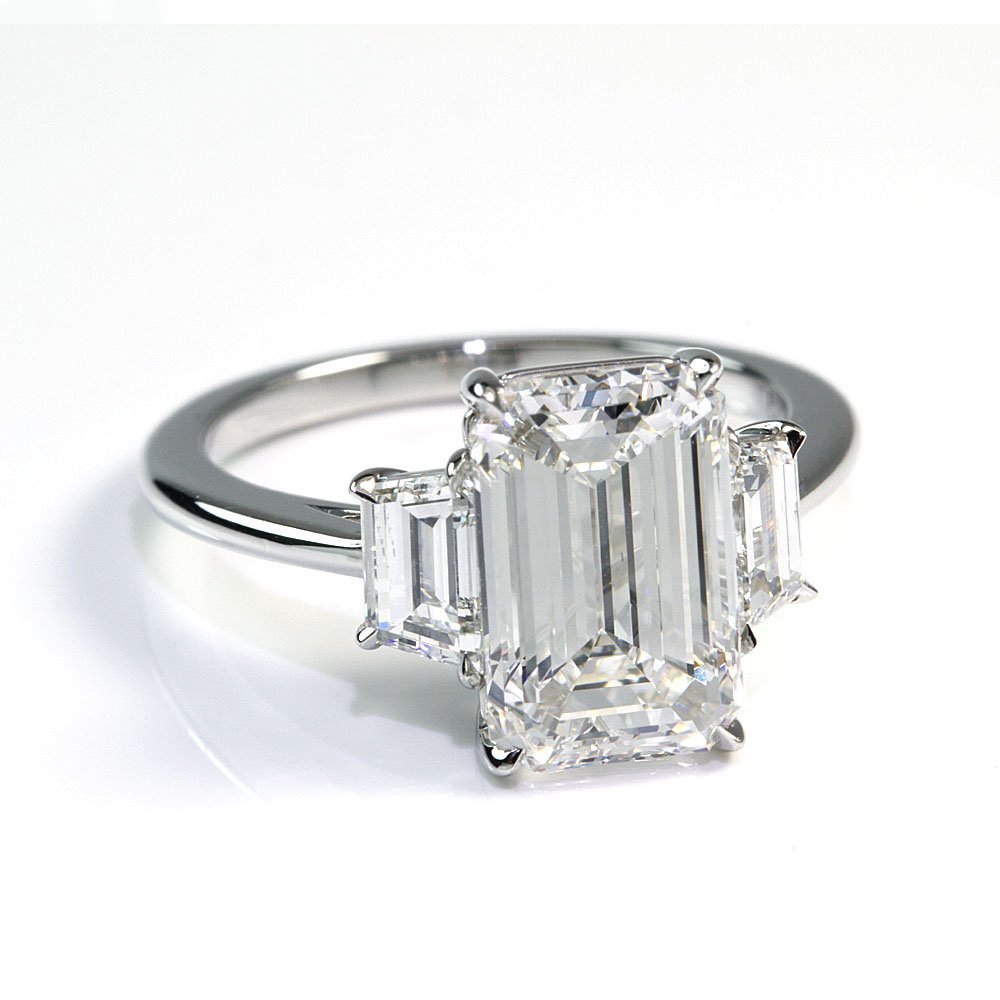 THREE-STONE TRAPEZOID WITH TAPERED EDGE DIAMOND ENGAGEMENT RING in 18K White Gold