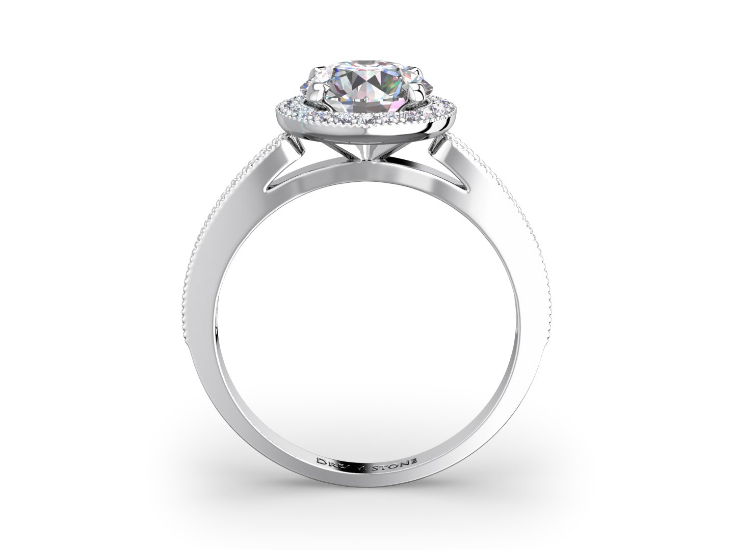 This classic setting features a gorgeous halo with subtle milgrain etchings along the borders providing a hint of vintage style to your ring.