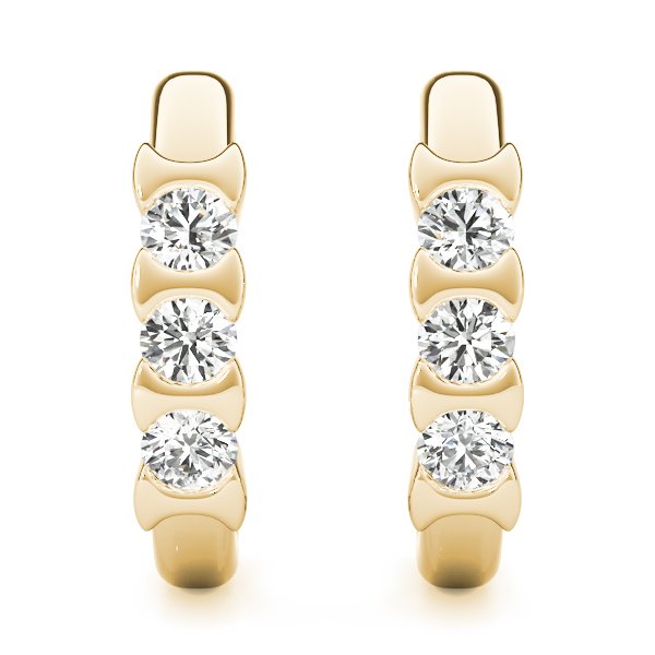 BEZELED DIAMOND 3 STONE EARRINGS in 18K Yellow Gold