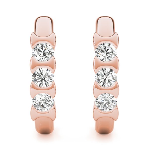 BEZELED DIAMOND 3 STONE EARRINGS in Rose Gold