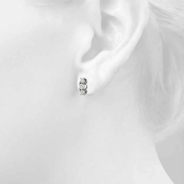 Illuminate your elegance with our Curved Diamond 3 Stone Earrings. Each earring features a trio of sparkling diamonds gracefully set in a curved design, exuding sophistication and allure. Elevate your style with timeless glamour and grace. Available in white gold, rose gold, or platinum.