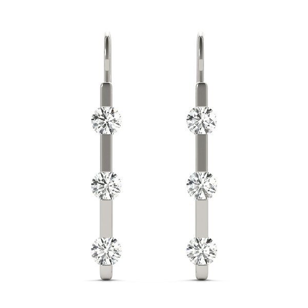 DIAMOND 3 STONE BAR EARRINGS in 14K White Gold