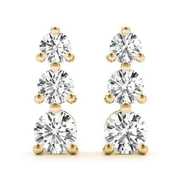 DIAMOND 3 STONE DROP EARRINGS WITH SHARED PRONGS in 18K Yellow Gold