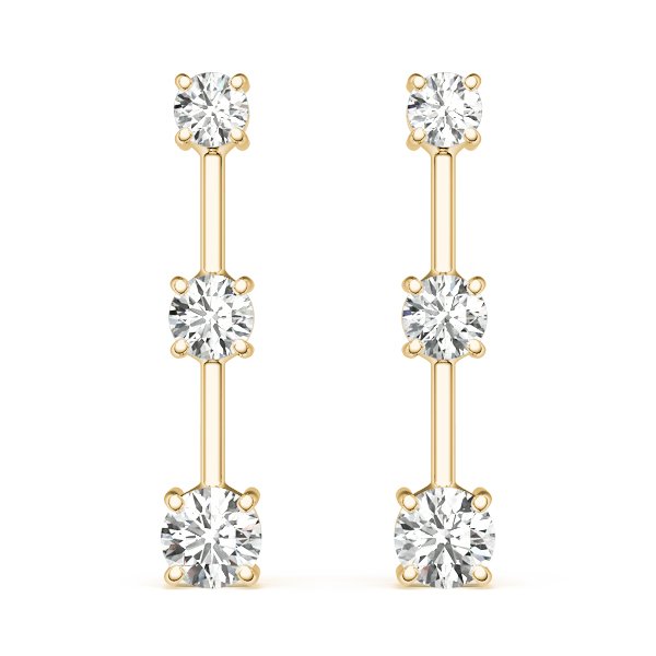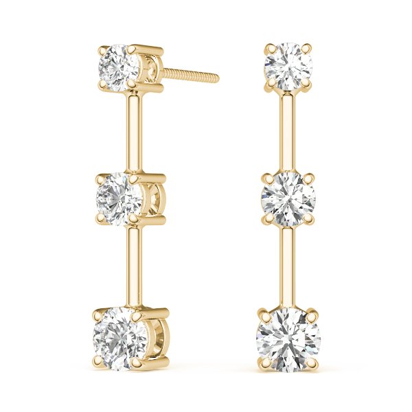DIAMOND 3 STONE SLIM BAR EARRINGS in 18K Yellow Gold