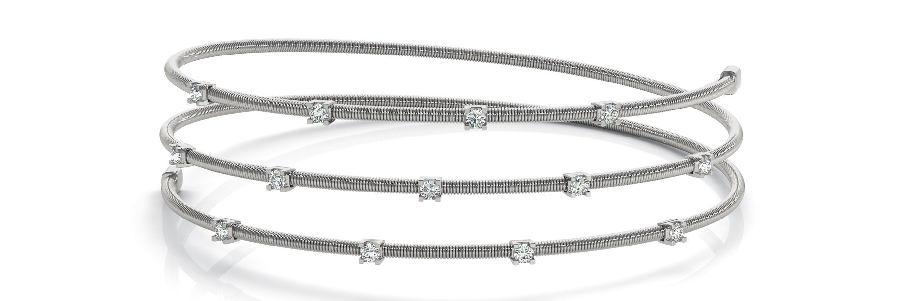 DIAMOND SPIRAL BANGLES BRACELET in 14K White Gold