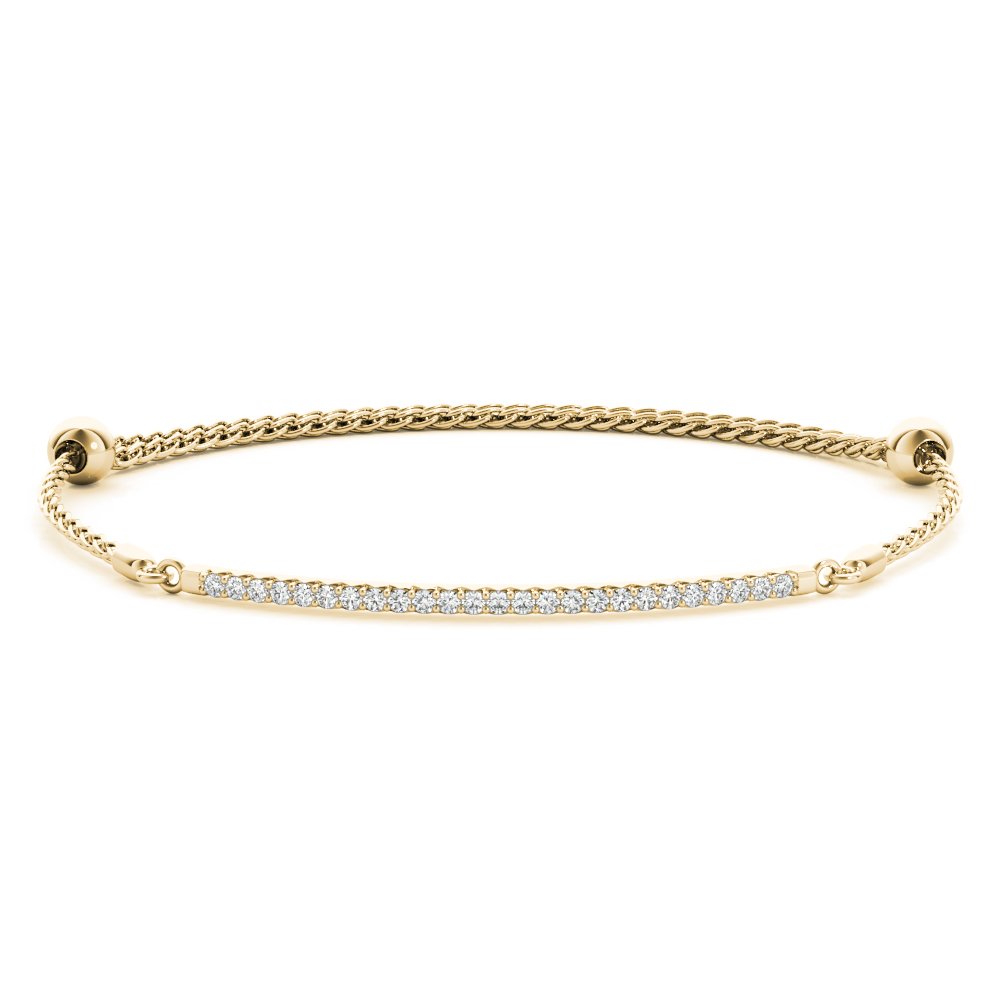 Introducing our Braided Single Row Bolo Bracelet. Crafted with intricate braided detail and adorned with sparkling diamonds, it exudes elegance and charm. Elevate your style with this versatile accessory, perfect for any occasion. Available in white gold, rose gold, or platinum.
