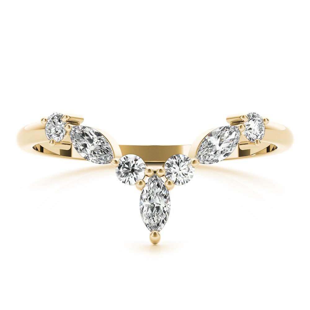 MARQUIS AND ROUND DIAMOND CHEVRON RING in 18K Yellow Gold